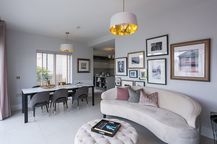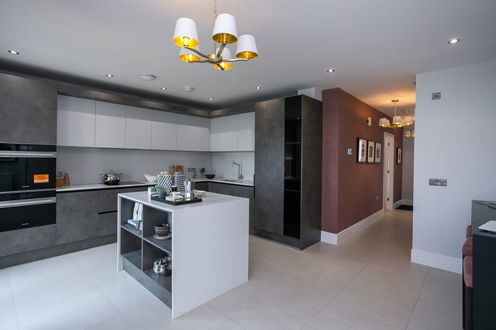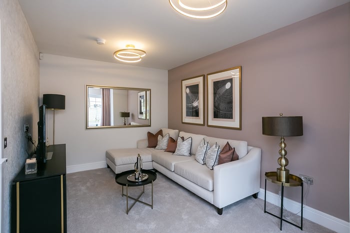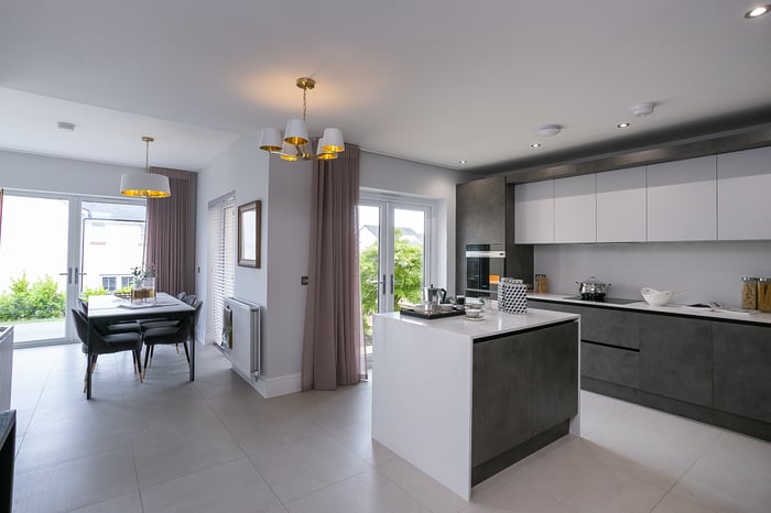 A tastefully presented lounge is set to the front, finished in neutral decor and carpeted flooring; whilst set to the rear, an exceptionally spacious open-plan kitchen/dining and family room benefits from bi-fold doors for the family room and French patio doors for the kitchen/dining area, leading to the garden and enjoying plentiful natural light. The stylish designer kitchen includes an integrated electric hob with an extractor hood, an eye-level double oven, a fridge/freezer and a dishwasher.