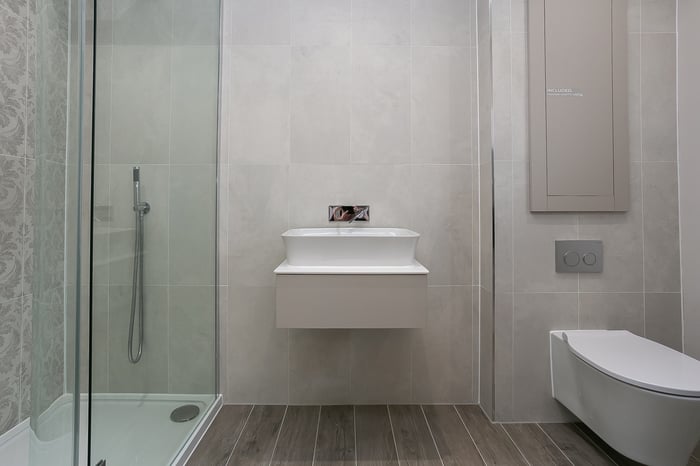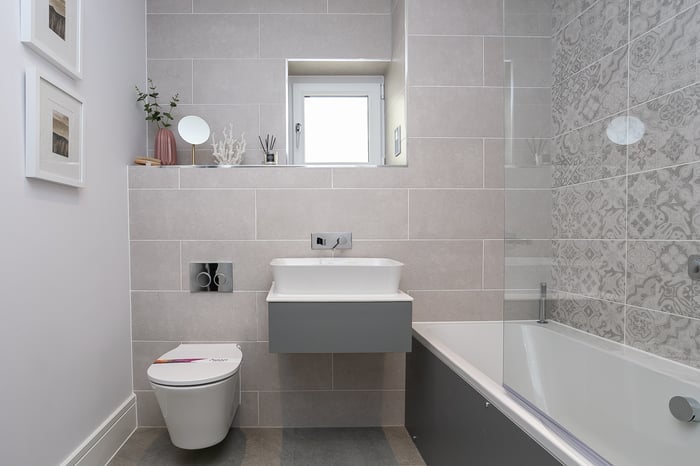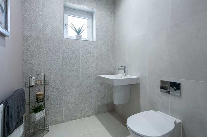 Bedroom two is similarly well-sized, also with a modern en-suite shower room and a built-in wardrobe; whilst two further well-sized carpeted bedrooms are set to the rear, overlooking the garden, with bedroom three featuring a built-in wardrobe. Completing the accommodation, with a side aspect window, the family bathroom is fitted with a modern three-piece suite, including a rainfall shower over the bath and stylish tiled splash walls.