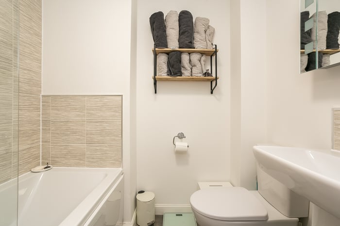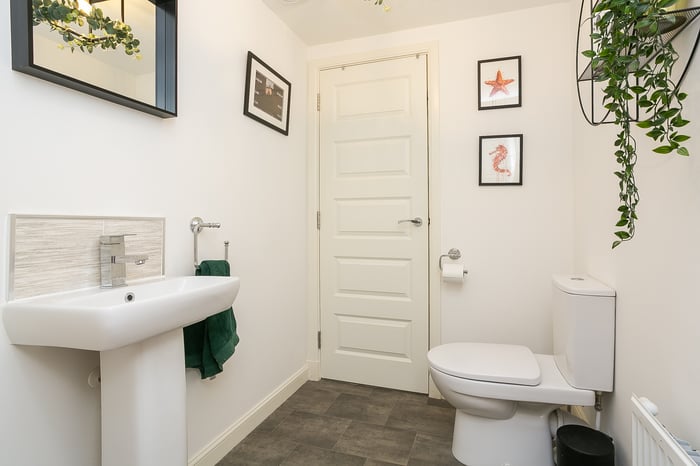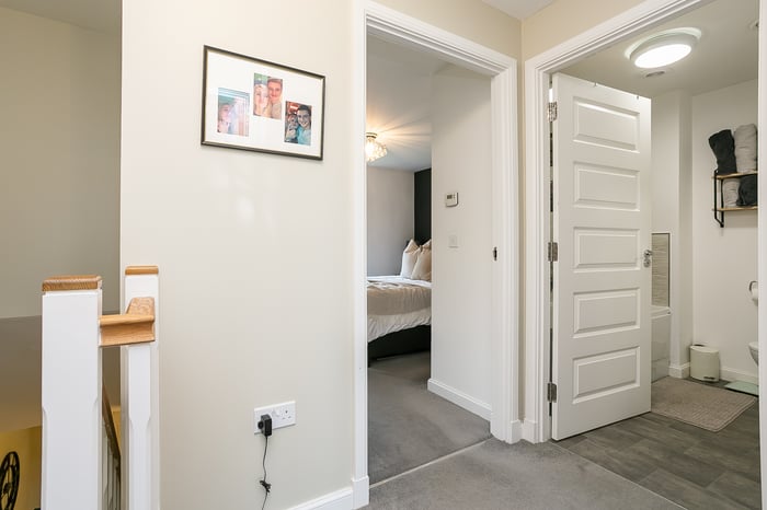 The family bathroom is fitted with a three-piece suite, including a mains shower over the bath, tiled splash walls and a shaver point.