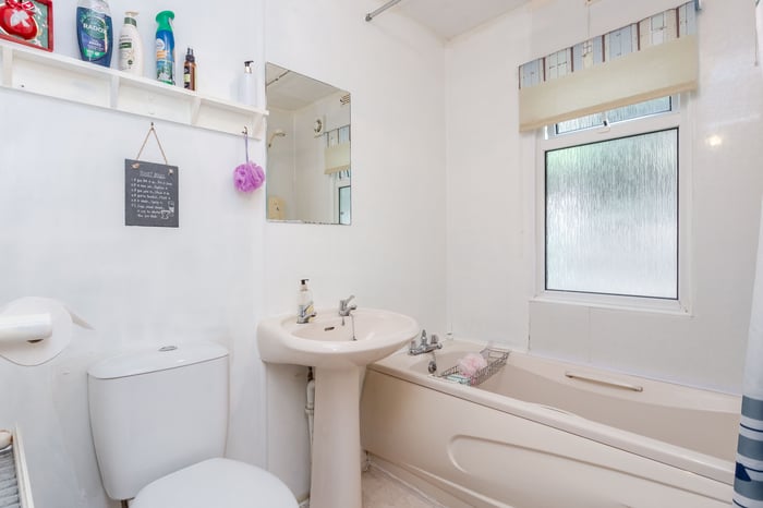 The accommodation is completed by a modern bathroom, featuring a fitted three-piece suite with a shower over the bath and a built-in storage cupboard.