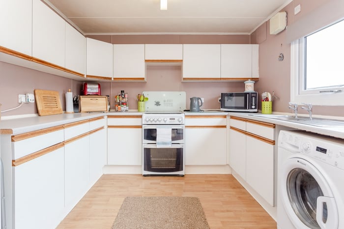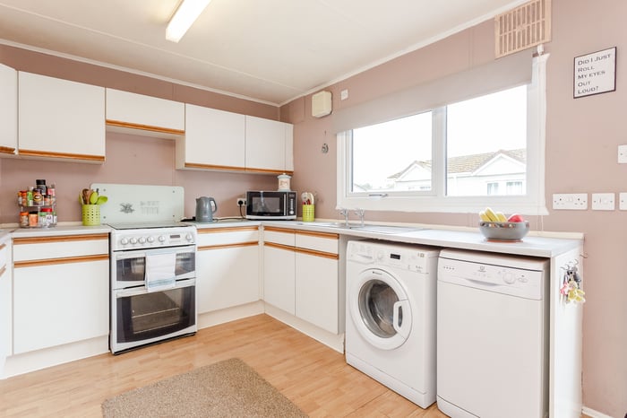 Tastefully presented and exceptionally spacious, three-bedroom park home with enclosed gardens and a driveway. Set on an enviable end-of-cul-de-sac plot, in a well-established and popular residential and holiday park near Ladybank, Fife.