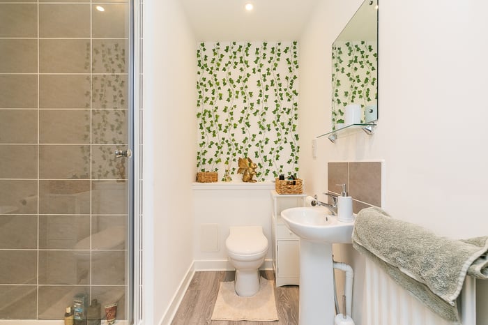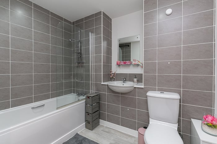 Whilst, the master bedroom also offers a generous shower room with a modern two-piece suite, an enclosure with a mains shower and luxury vinyl flooring. Completing the accommodation, set internally off the hall, the main bathroom is fitted with a contemporary suite with a shower over the bath, shaver point and tiled splash walls.