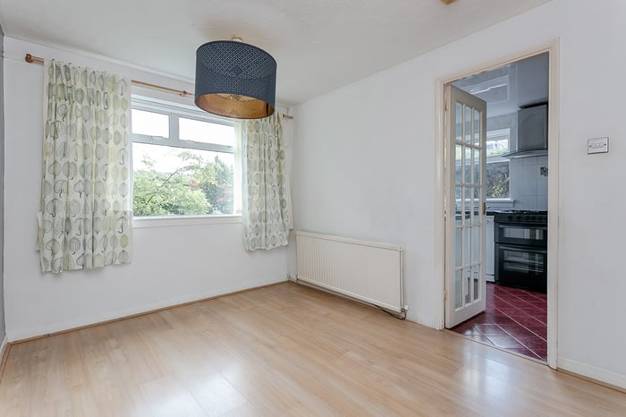 • Comprises an entrance porch, hall, living and dining rooms, kitchen, three flexible bedrooms, and a family bathroom.