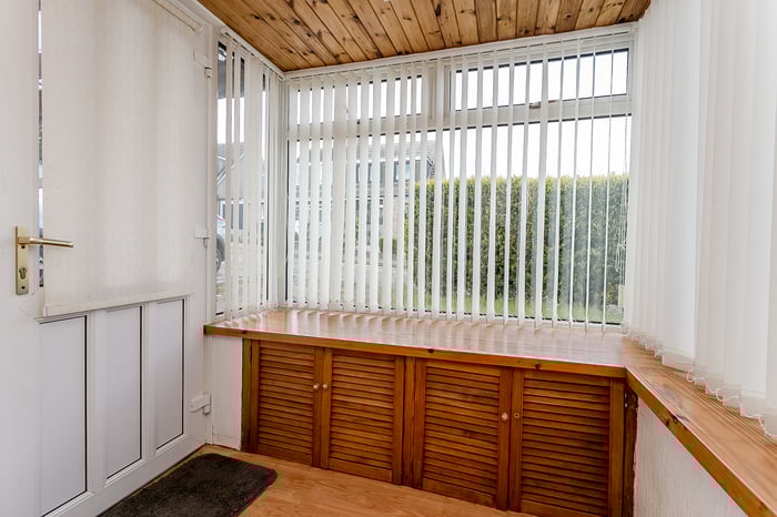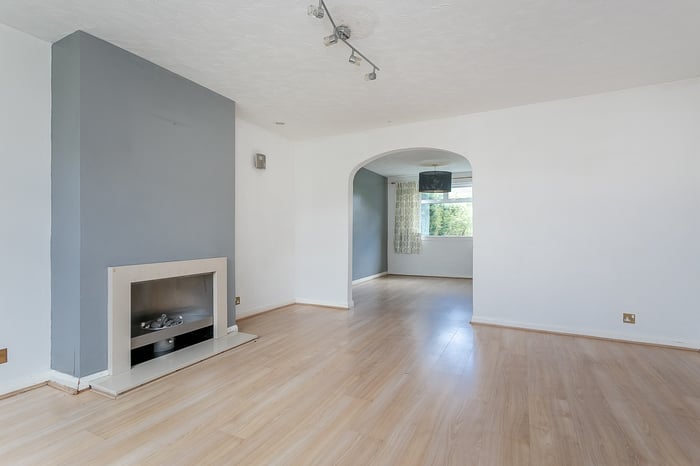 The entrance porch provides good storage, ideal for coats, shoes, and everyday items. The spacious living/dining room benefits from dual-aspect windows to the front and rear, creating a bright and airy feel.