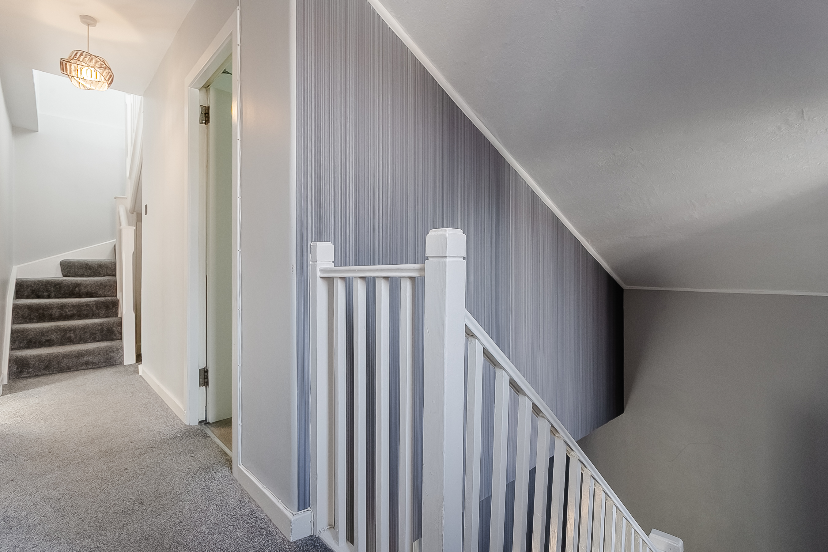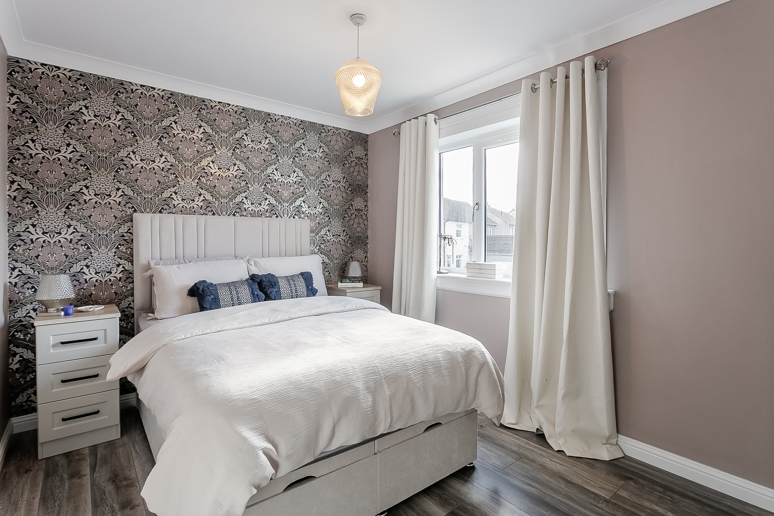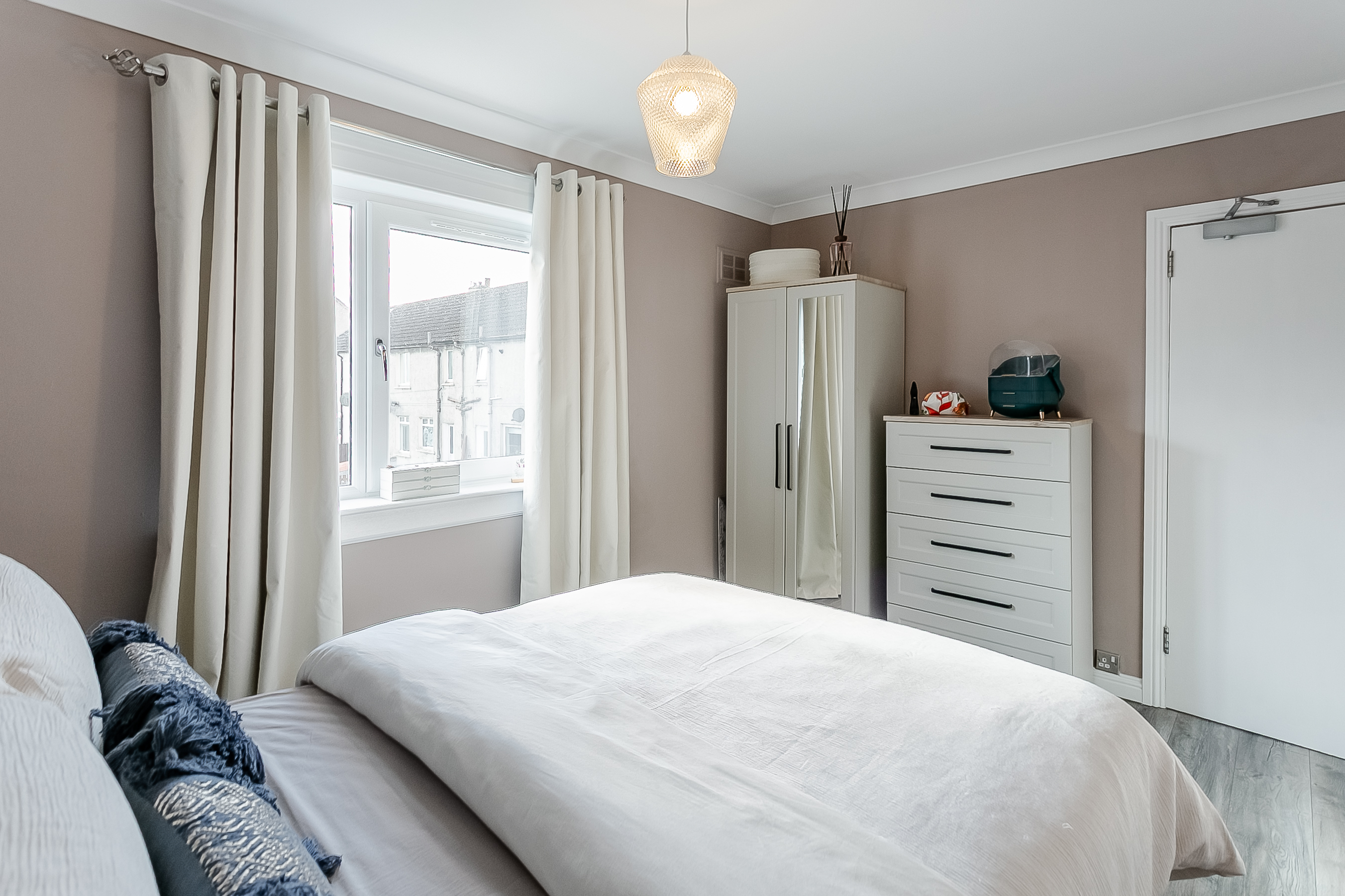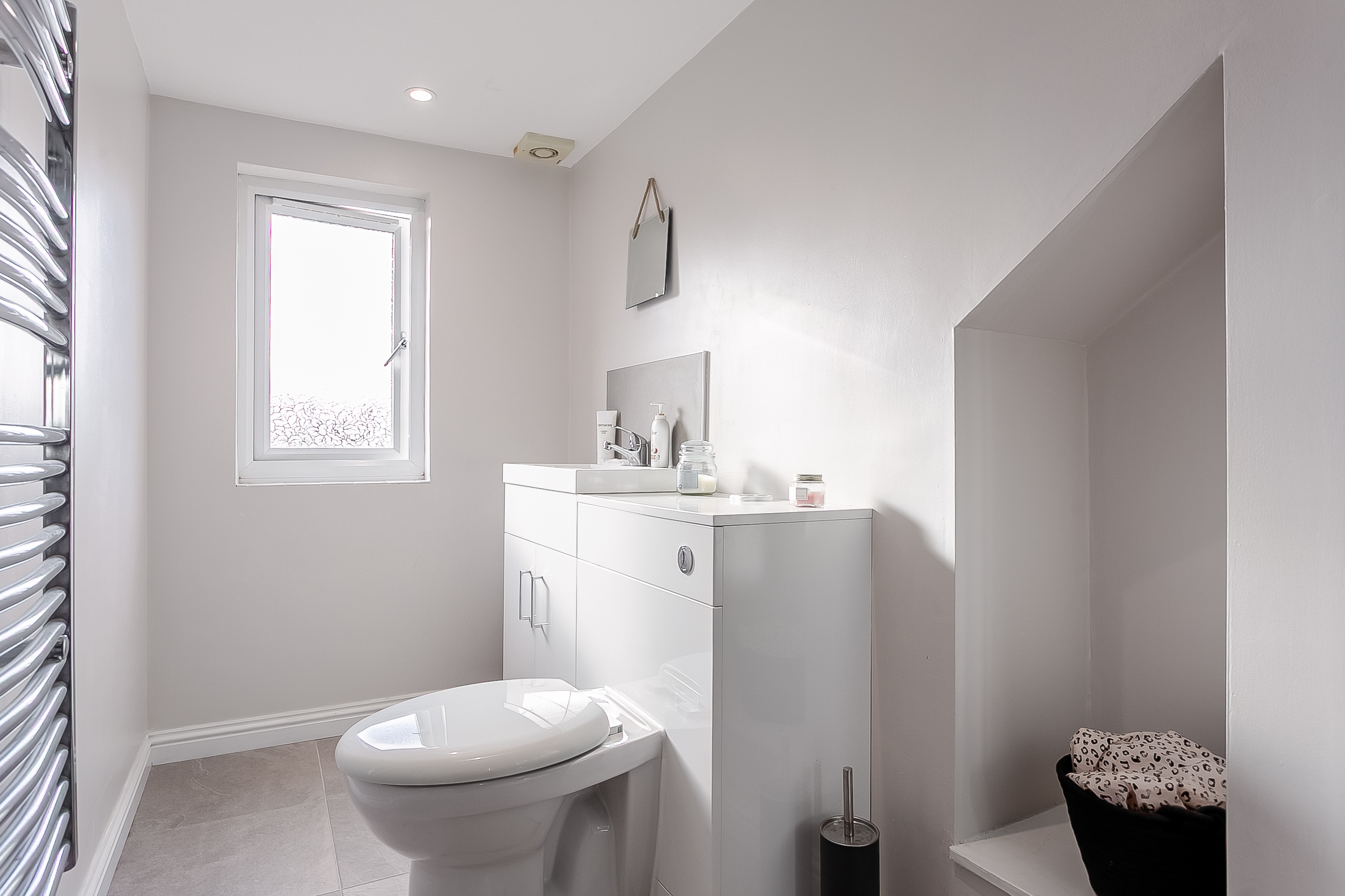 On the first floor, there are three well-proportioned bedrooms. The principal bedroom offers generous space for a double bed and additional furnishings, while bedroom two includes a built-in storage cupboard and enjoys a bright, airy aspect.