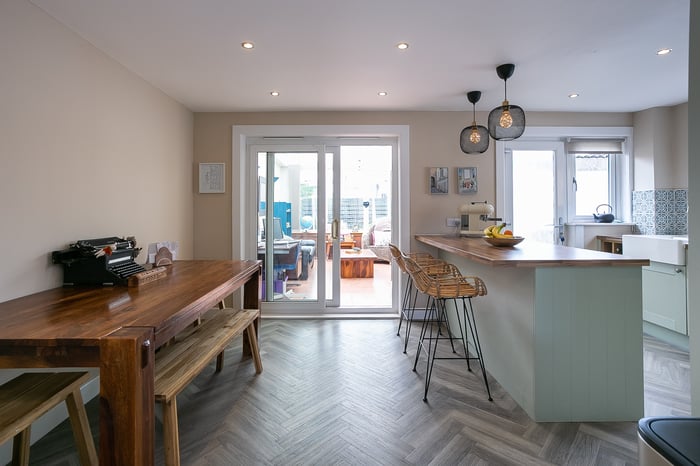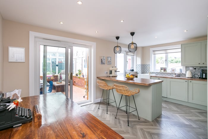 • Comprises an entrance hall, living room, dining/kitchen, sun room, three flexible bedrooms and a family bathroom.