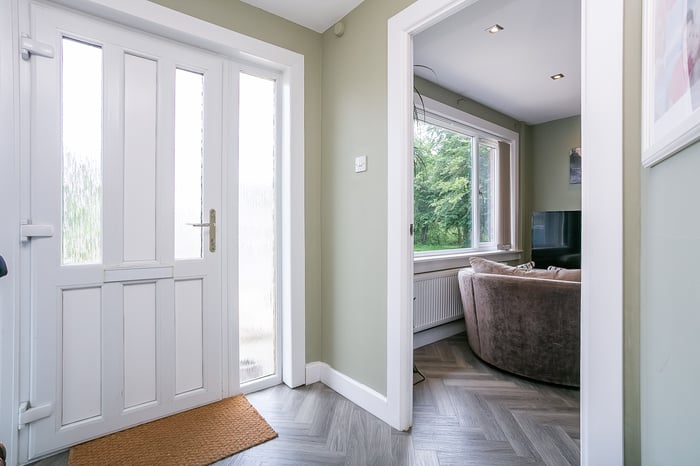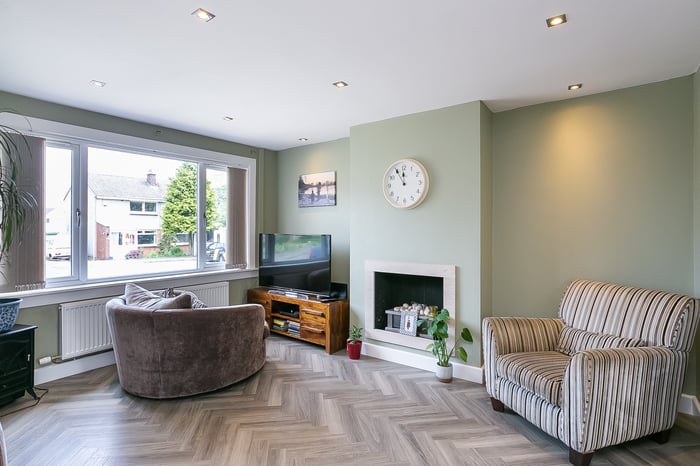 Light and tastefully presented, three-bedroom, semi-detached house, with gardens, a driveway and a garage. Located in a leafy and desirable residential area of the Midlothian town of Penicuik, to the south of Edinburgh. A welcoming entrance hall leads into a living room, on the left, filled with light from a wide, front-facing window.