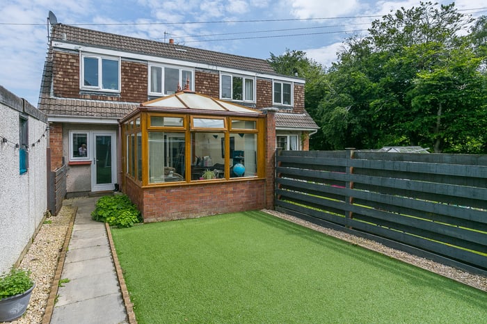 • Light and tastefully presented, three-bedroom, semi-detached house, with gardens, a driveway and a garage.