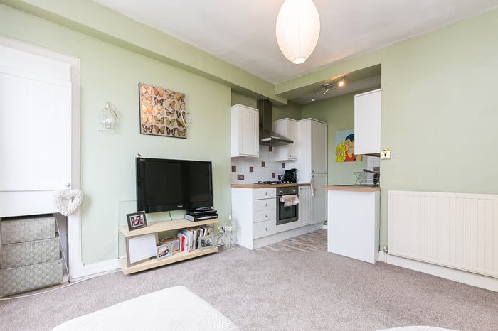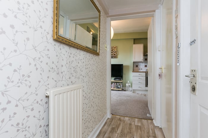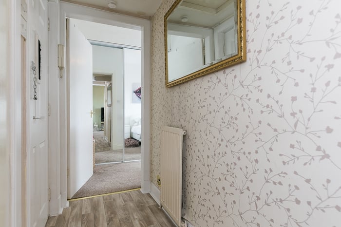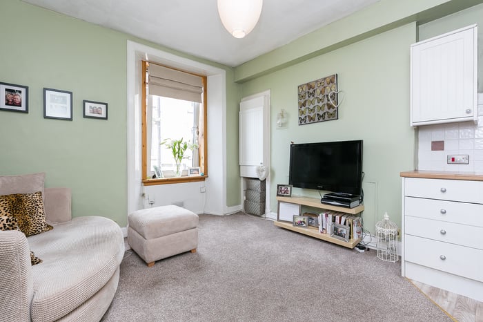 ** CLOSING DATE SET 12 NOON 12th SEPTEMBER** Well-presented and bright, one-bedroom, second-floor flat forming part of traditional stone-built tenement, conveniently located in the popular and vibrant Broughton area, just north of Edinburgh city centre. The hall gives access throughout and features a radiator, the secured entry system handset, and wood-effect vinyl flooring.