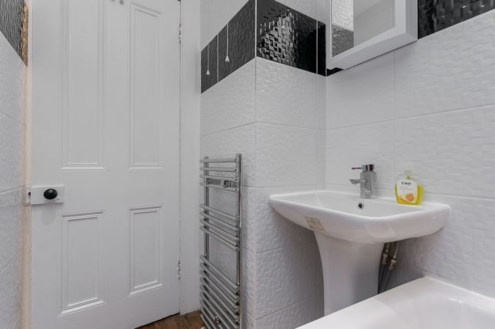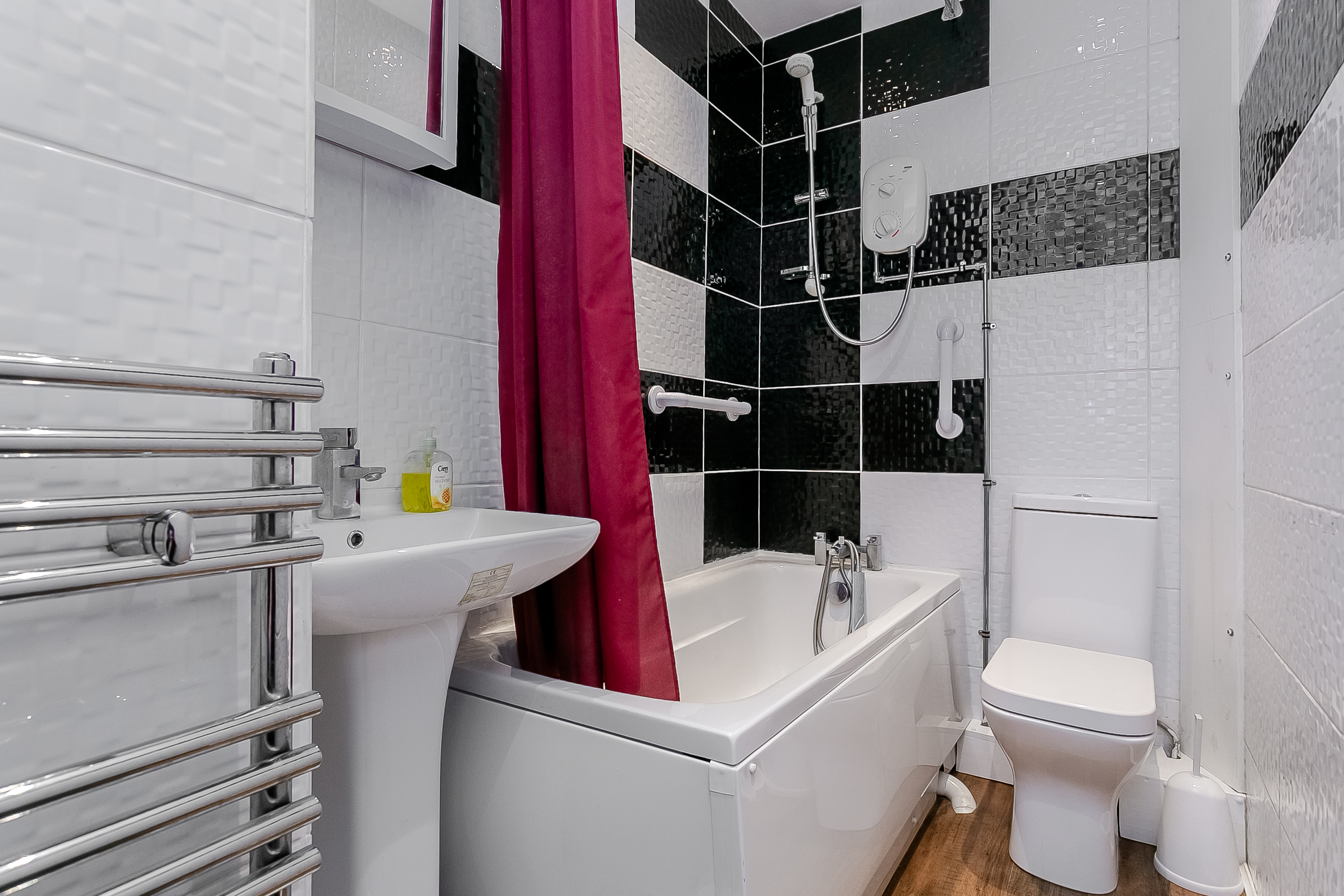 The bedroom is finished in light, tasteful décor with carpeted flooring and also benefits from a feature fireplace. Completing the property is the bathroom, comprising a three-piece suite with an electric shower over the bath and a ladder-style radiator.