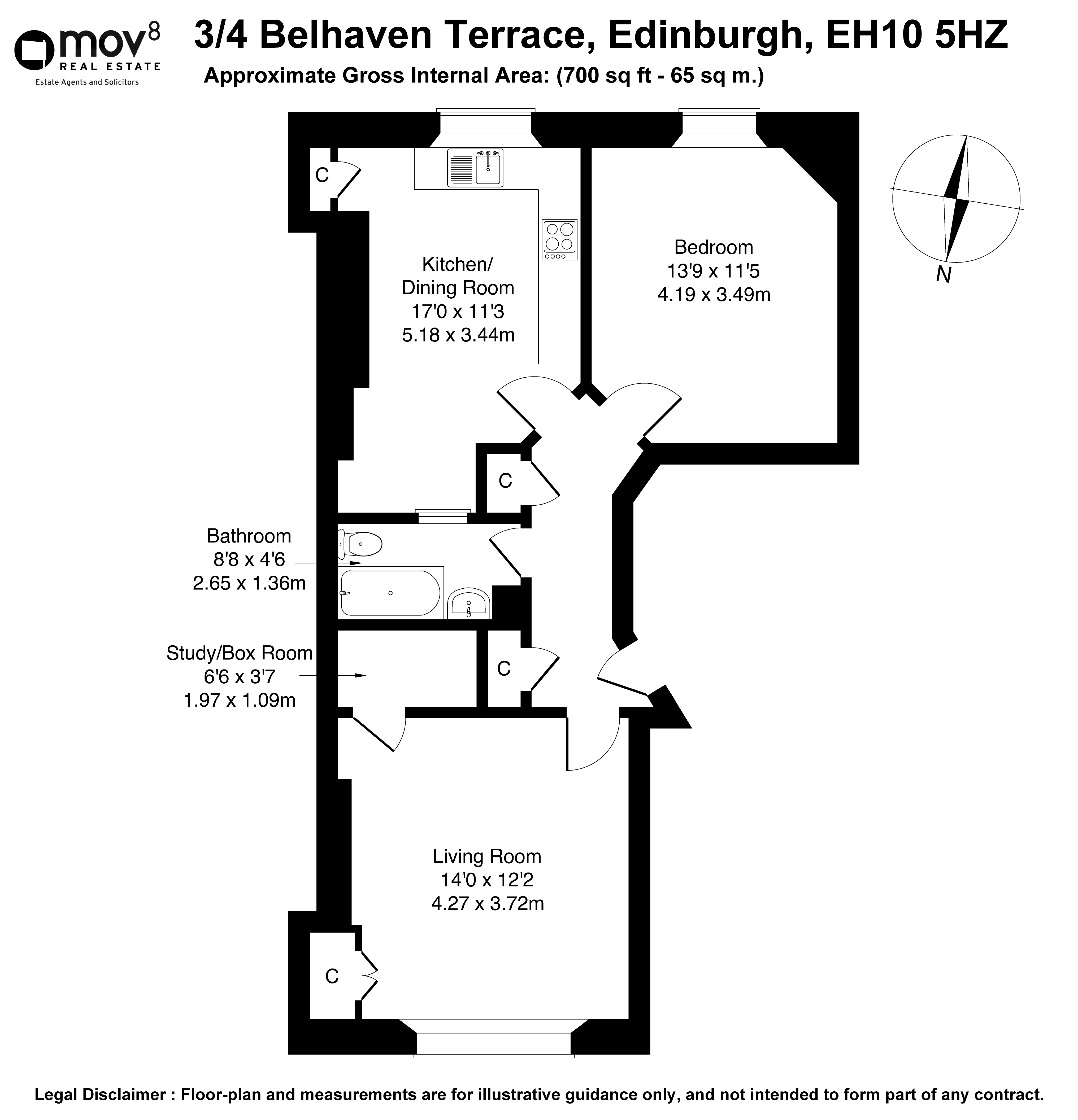 • Comprises an entrance hallway, living room, dining/kitchen, a double bedroom, a box/study, and a bathroom.