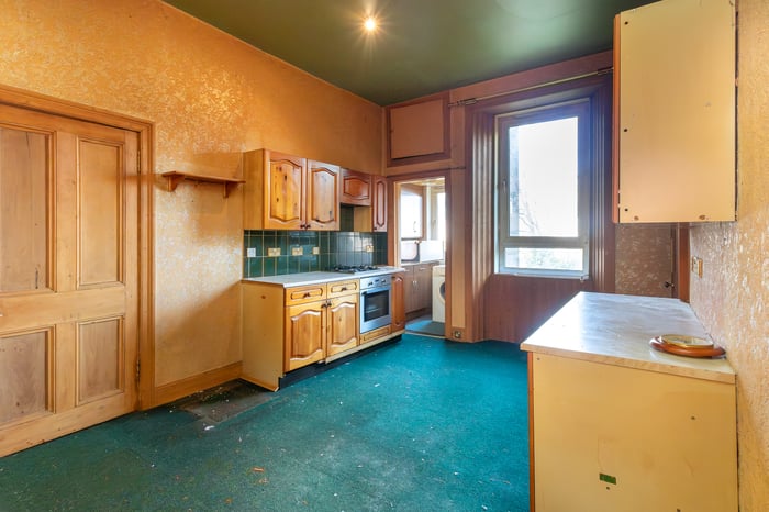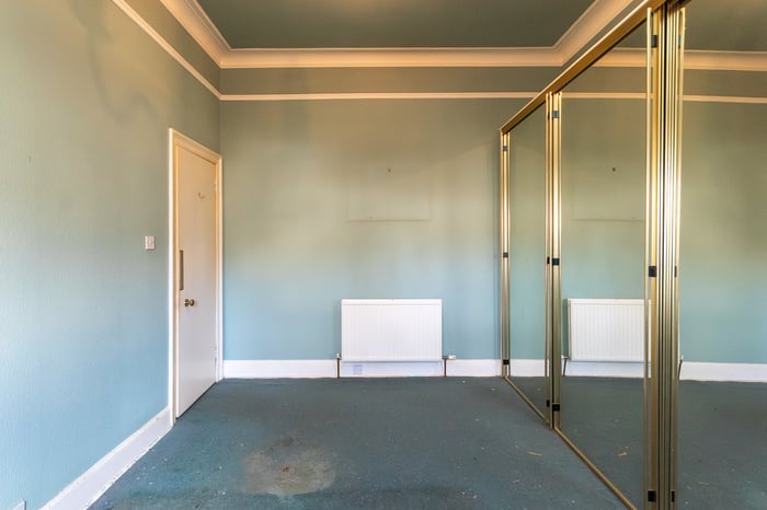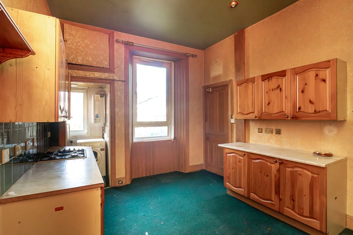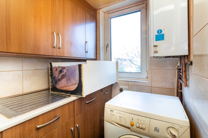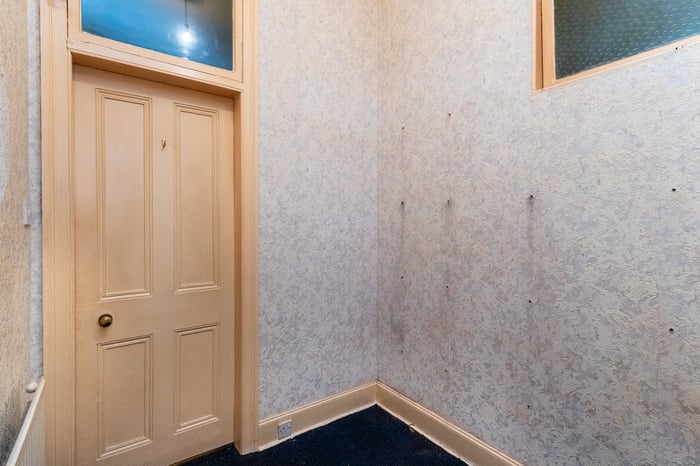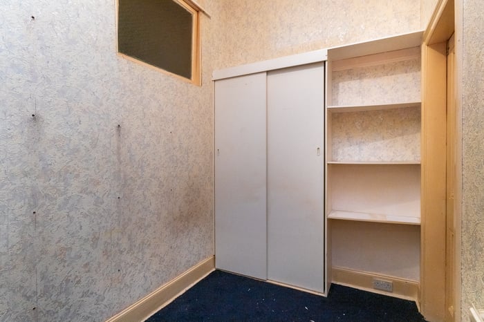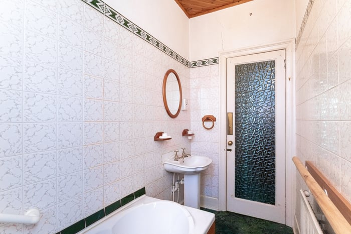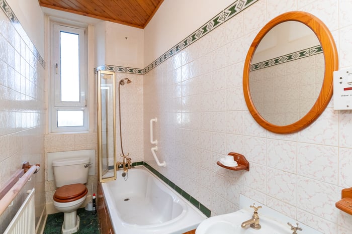 The main bedroom continues the generous proportions of the living space and features integrated wardrobe storage, whilst the second bedroom (enjoying access from both the living room and the hall) offers a good-sized, versatile space. Completing the accommodation, a naturally lit bathroom comprises a three-piece suite, a shower-over-bath and tiled splash walls.