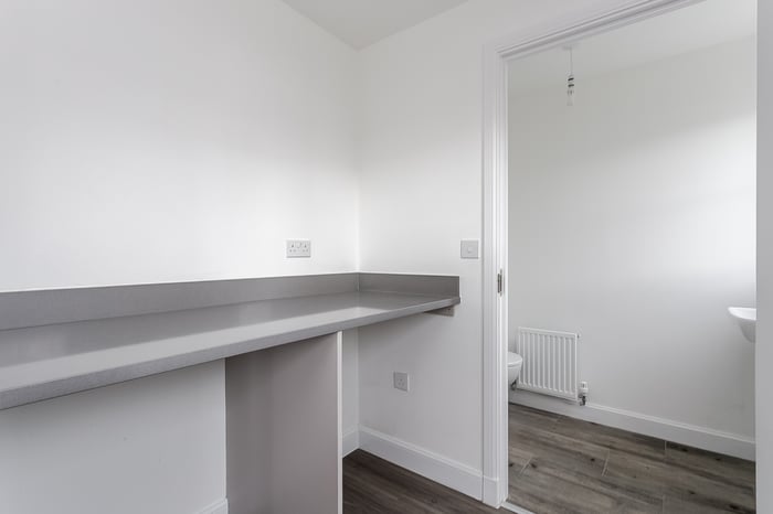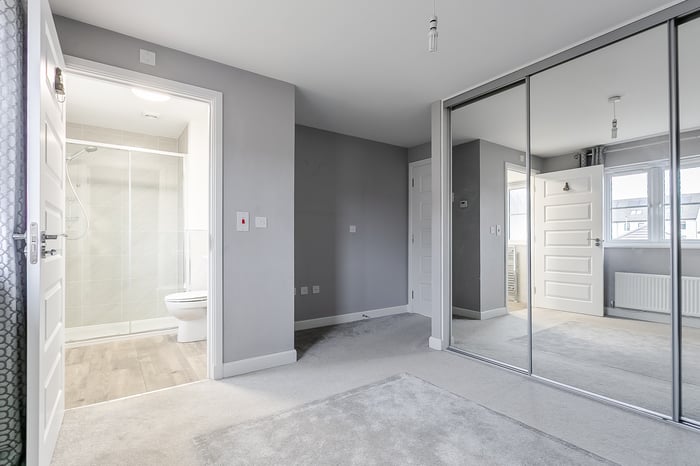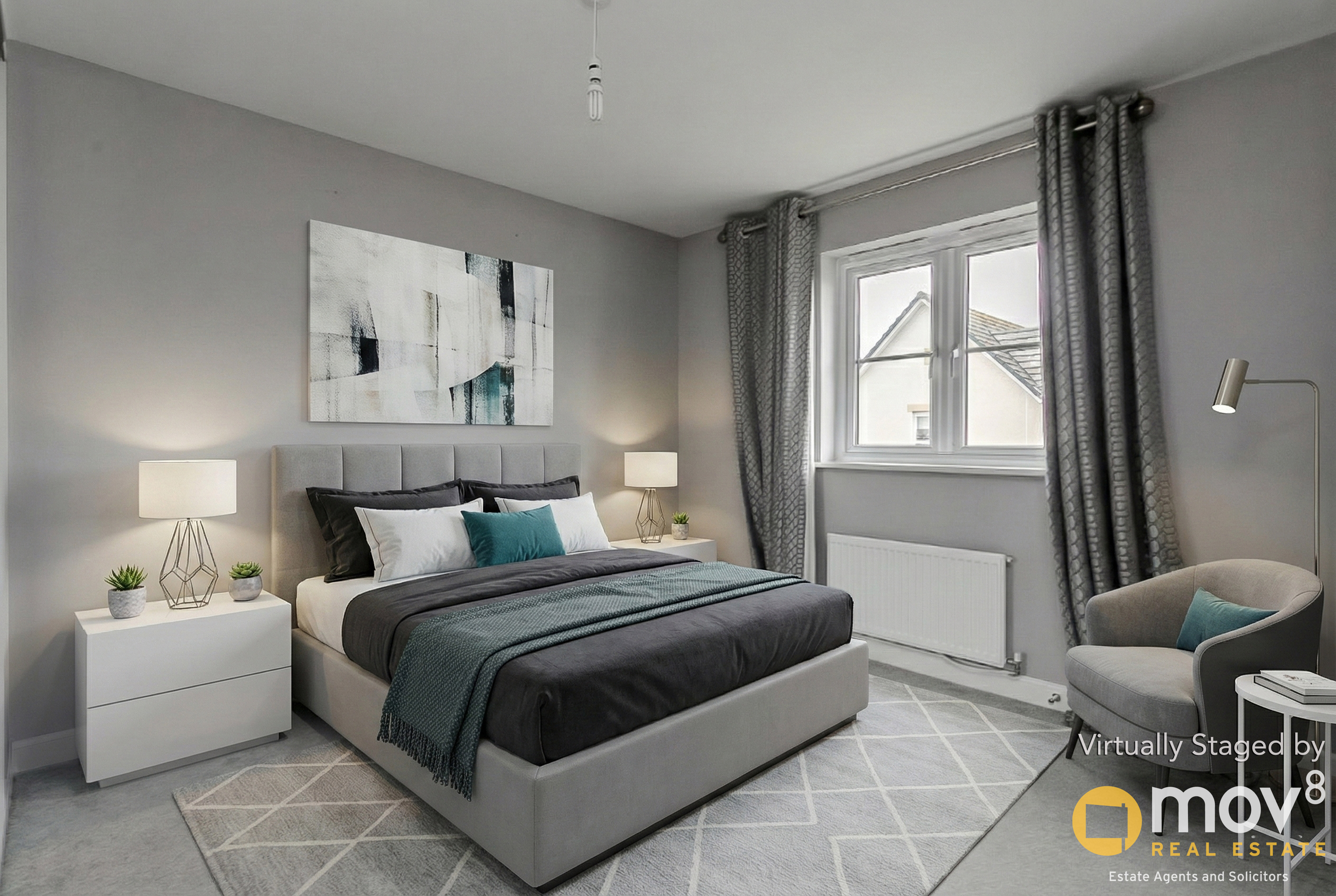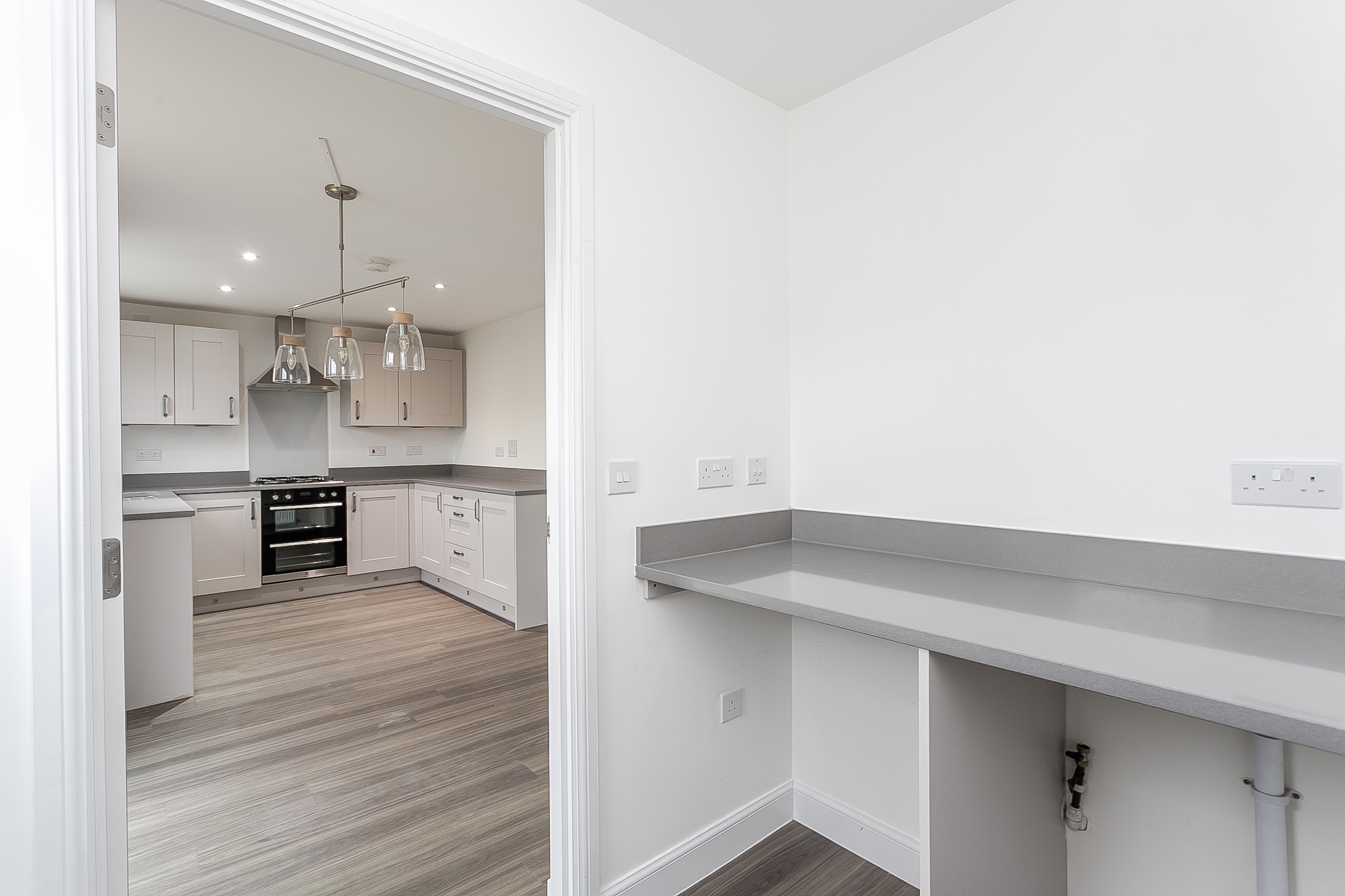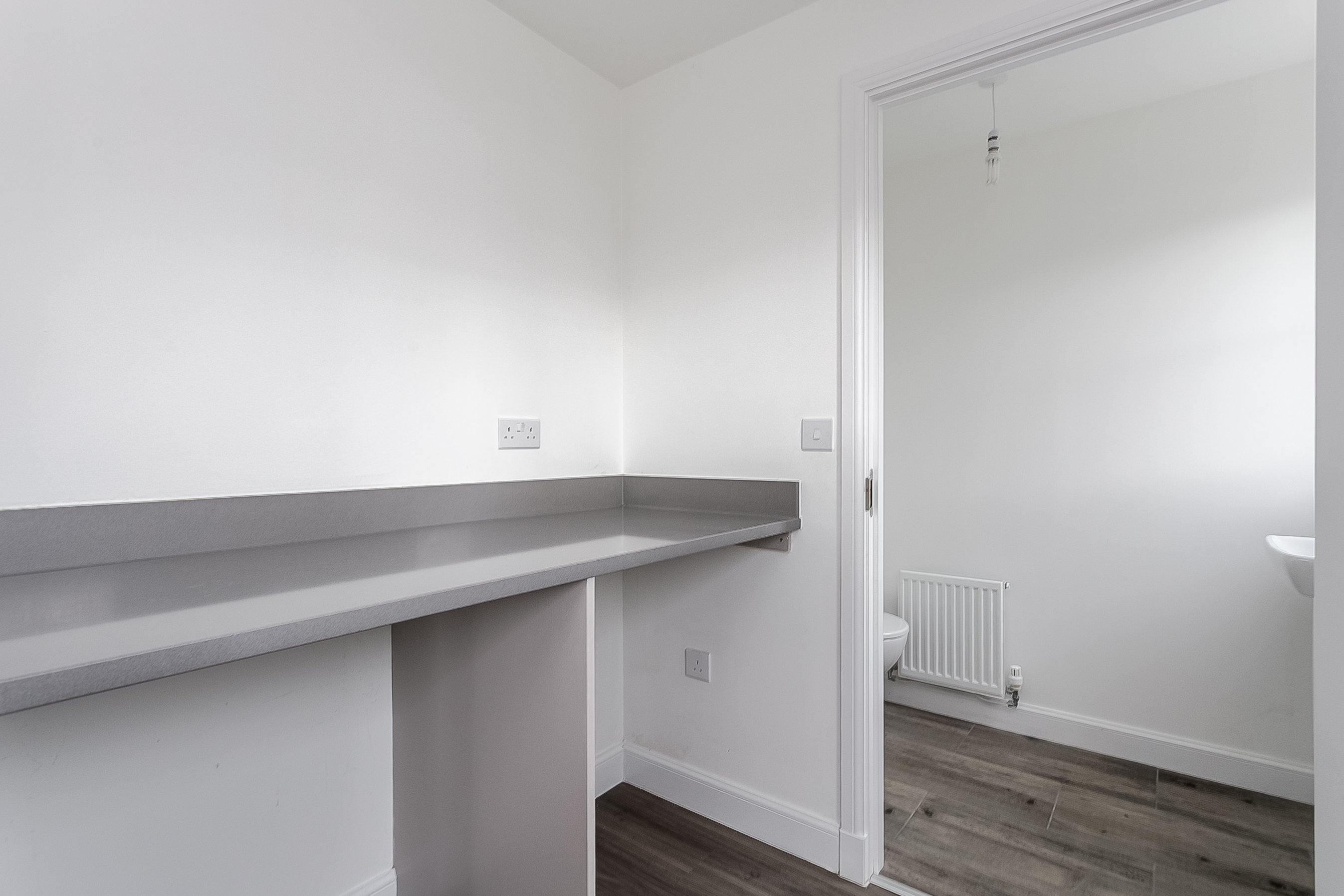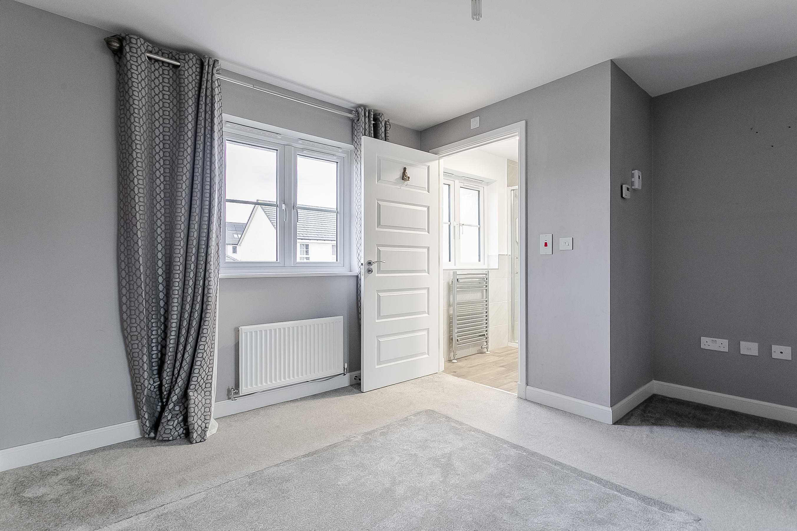 A separate utility room provides further appliance space and leads to a convenient WC. Upstairs, the generous master bedroom benefits from mirrored fitted wardrobes and a sleek en-suite shower room.