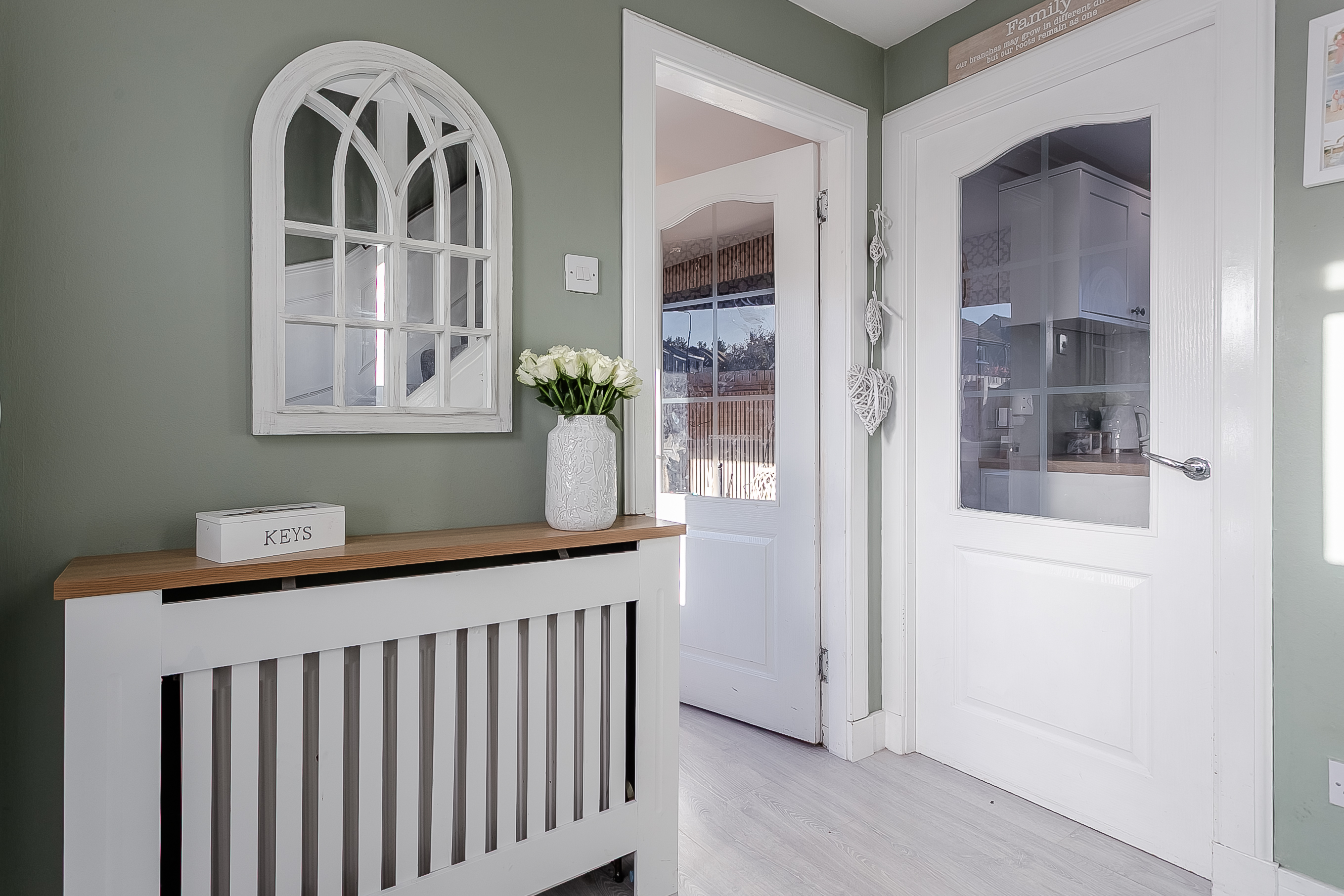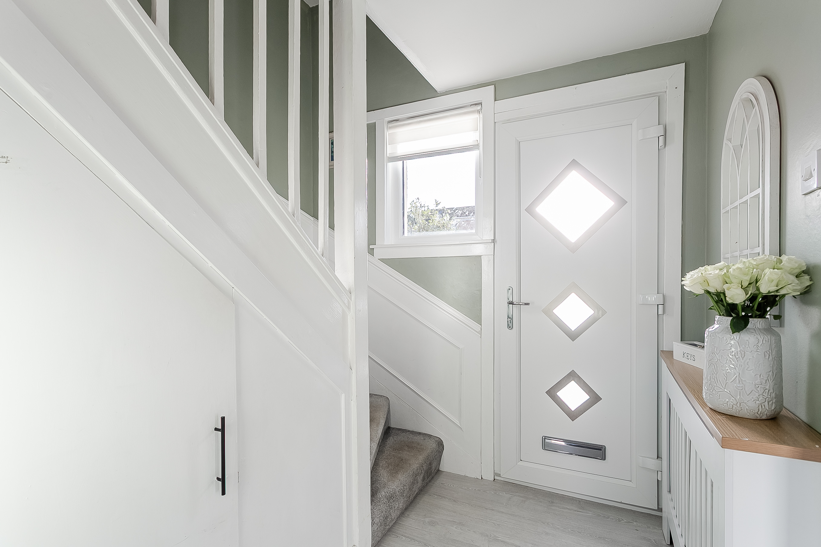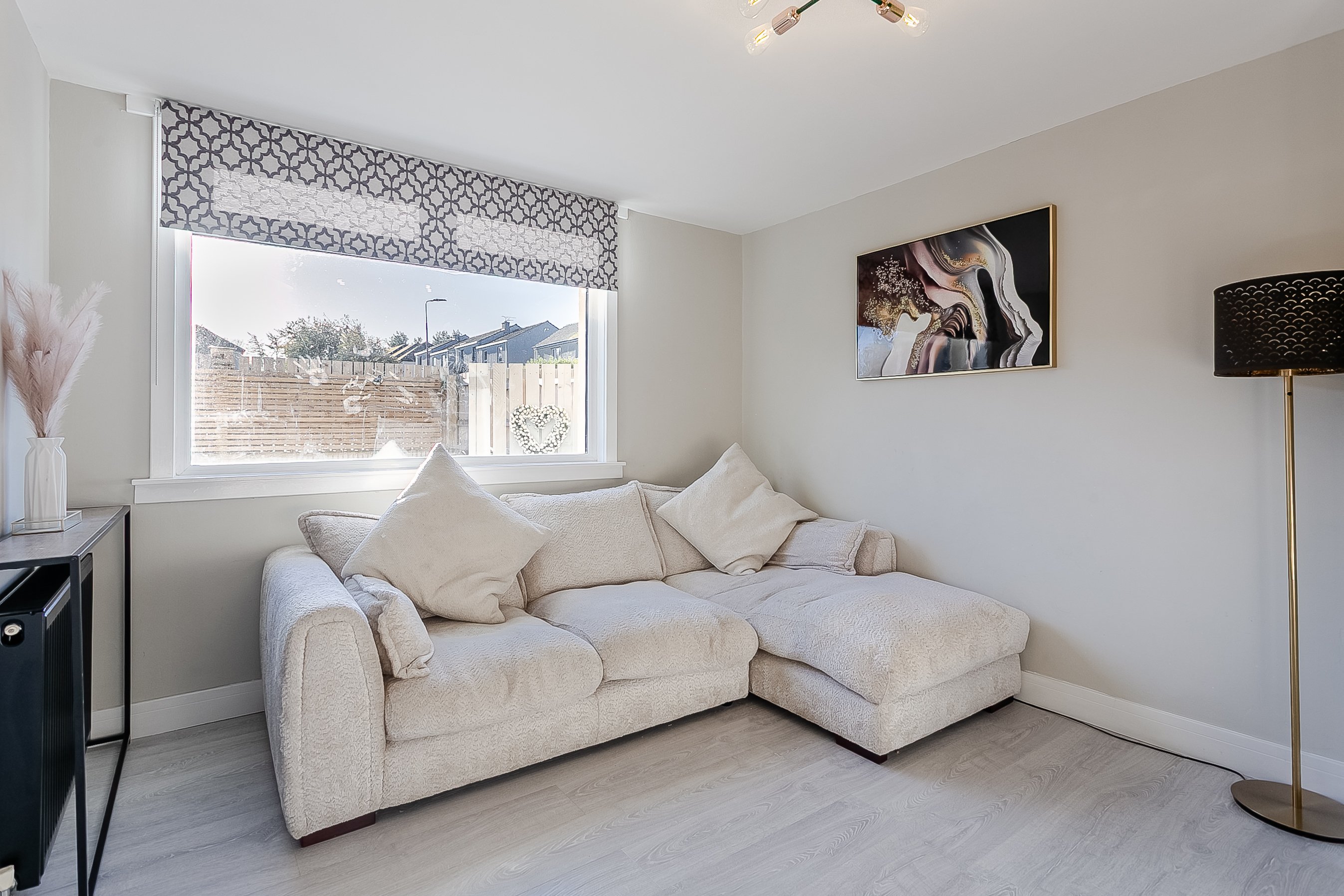 Light and tastefully presented, south-facing two-bedroom, mid-terrace family home, with landscaped gardens. With a cul-de-sac setting, located in a quiet, established residential area of Macmerry, near Tranent, East Lothian. A welcoming entrance leads into this beautiful home, where contemporary flooring flows throughout to a spacious, modern living room with light décor.