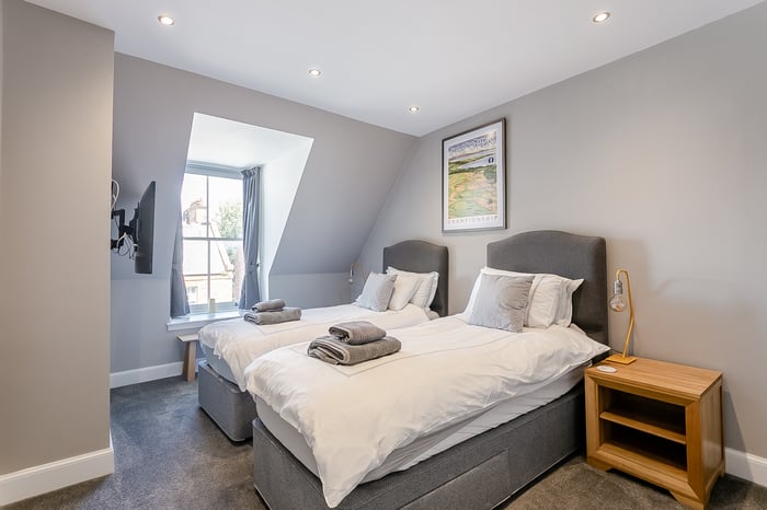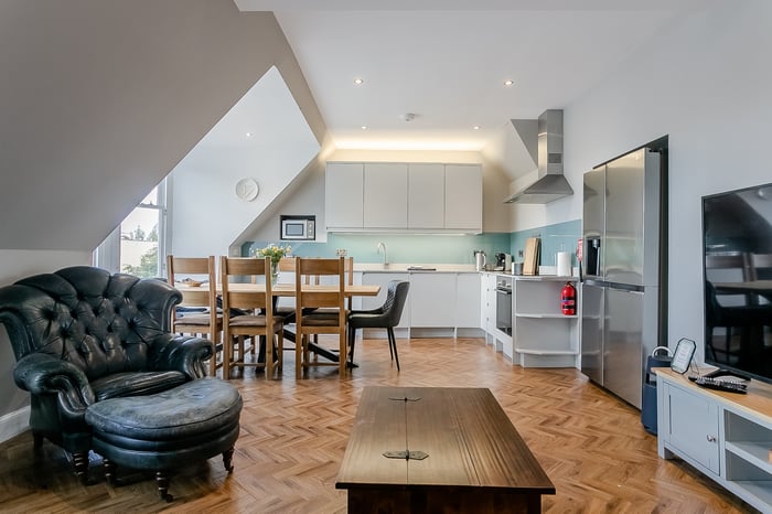 Immaculately presented and spacious, flexible four-bedroom, corner aspect upper villa, forming part of a high-end stone-built period conversion. Set adjacent to a shared green in the heart of the Gullane Conservation Area, a highly sought-after coastal village in East Lothian.