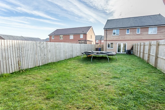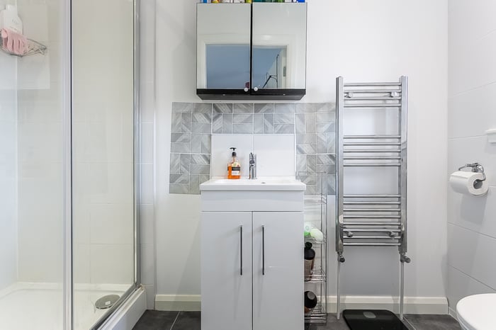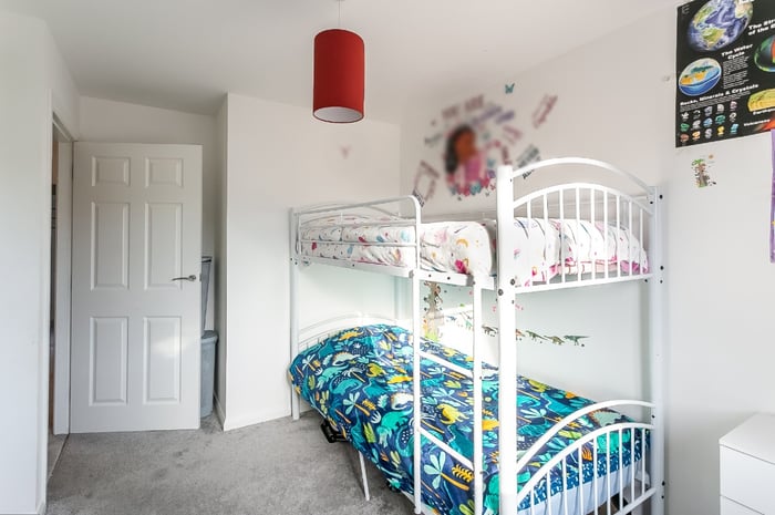 Two further carpeted bedrooms are set to the front, with bedroom three including a built-in cupboard. Completing the accommodation, the family bathroom is fitted with a modern three-piece suite including a shower over the bath, tiled splash walls and a ladder-style radiator.