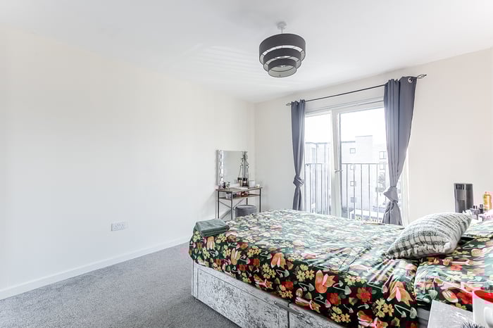 • With Juliet balconies to both aspects featuring city skyline views and the Forth Crossings, and light neutral decor throughout.