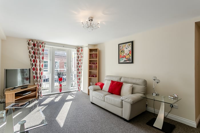 Immaculately presented, two-bedroom, first-floor flat, set in a modern, factored, residential apartment block, offering stylish and spacious accommodation. Located in the popular and well-placed Brunswick area, to the east of Edinburgh city centre.