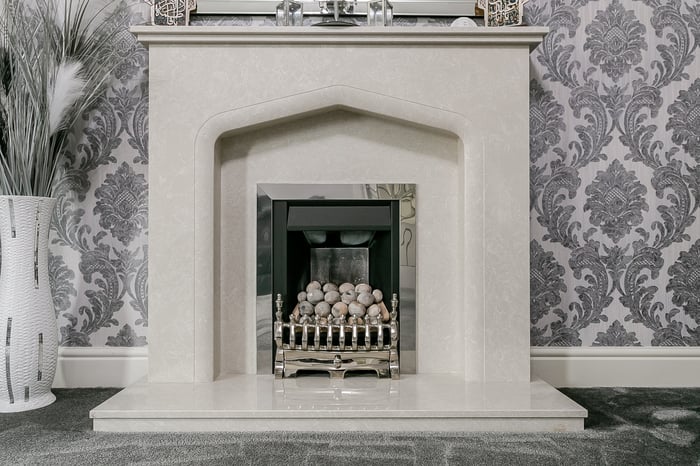 Highlights include a stylish kitchen, modern bathrooms, contemporary flooring and lighting, and an impressive marble fireplace and bay window for the front-facing living room.