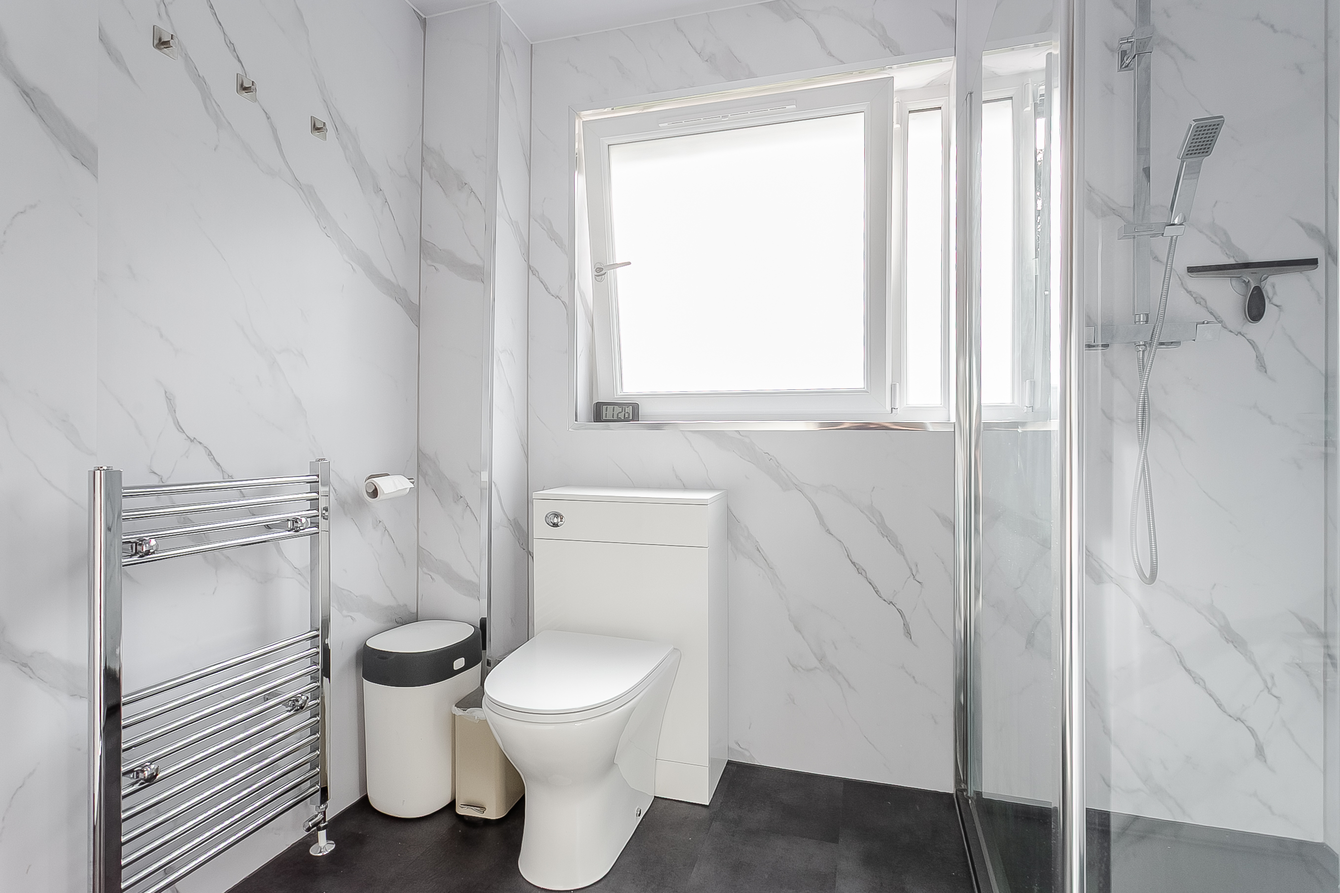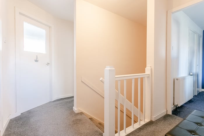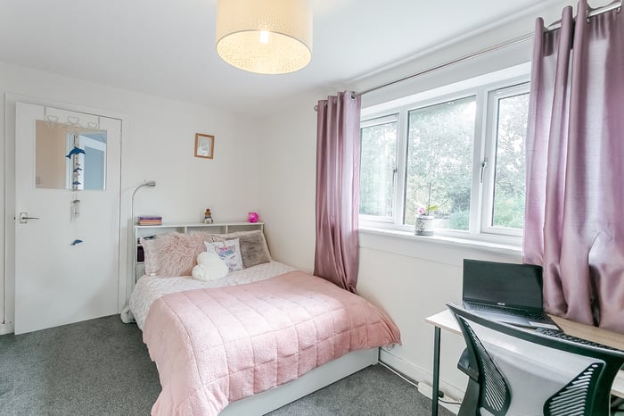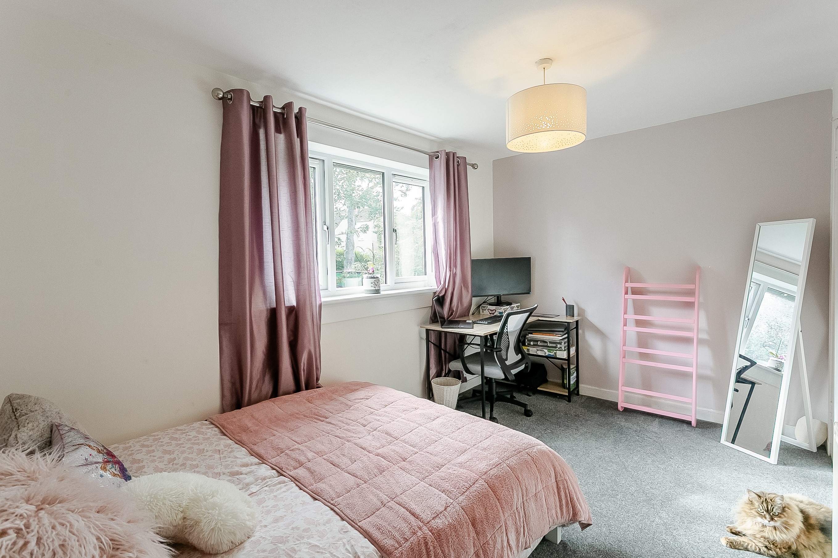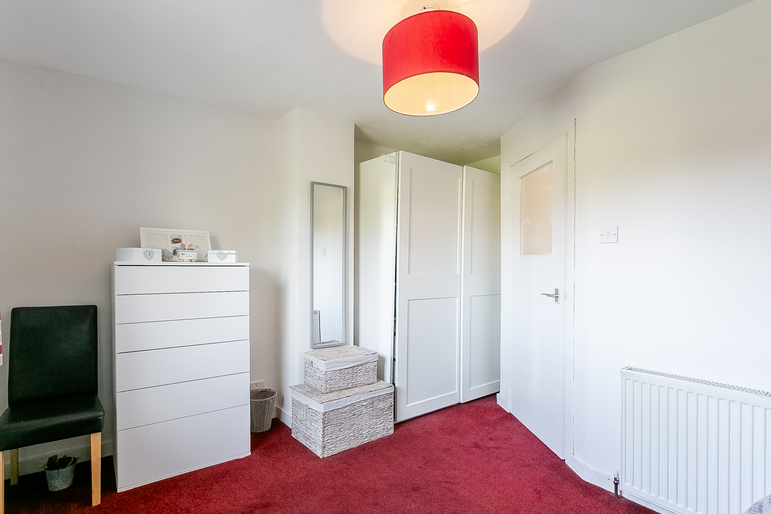 Bedroom two is another comfortable double, also carpeted, with its own built-in wardrobe and enough space for a desk or dressing table. The third bedroom, also fitted with carpet, can be another ideal double bedroom, nursery, or home office, offering great flexibility for a growing family or those working from home.