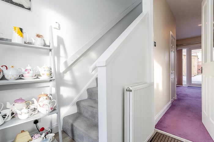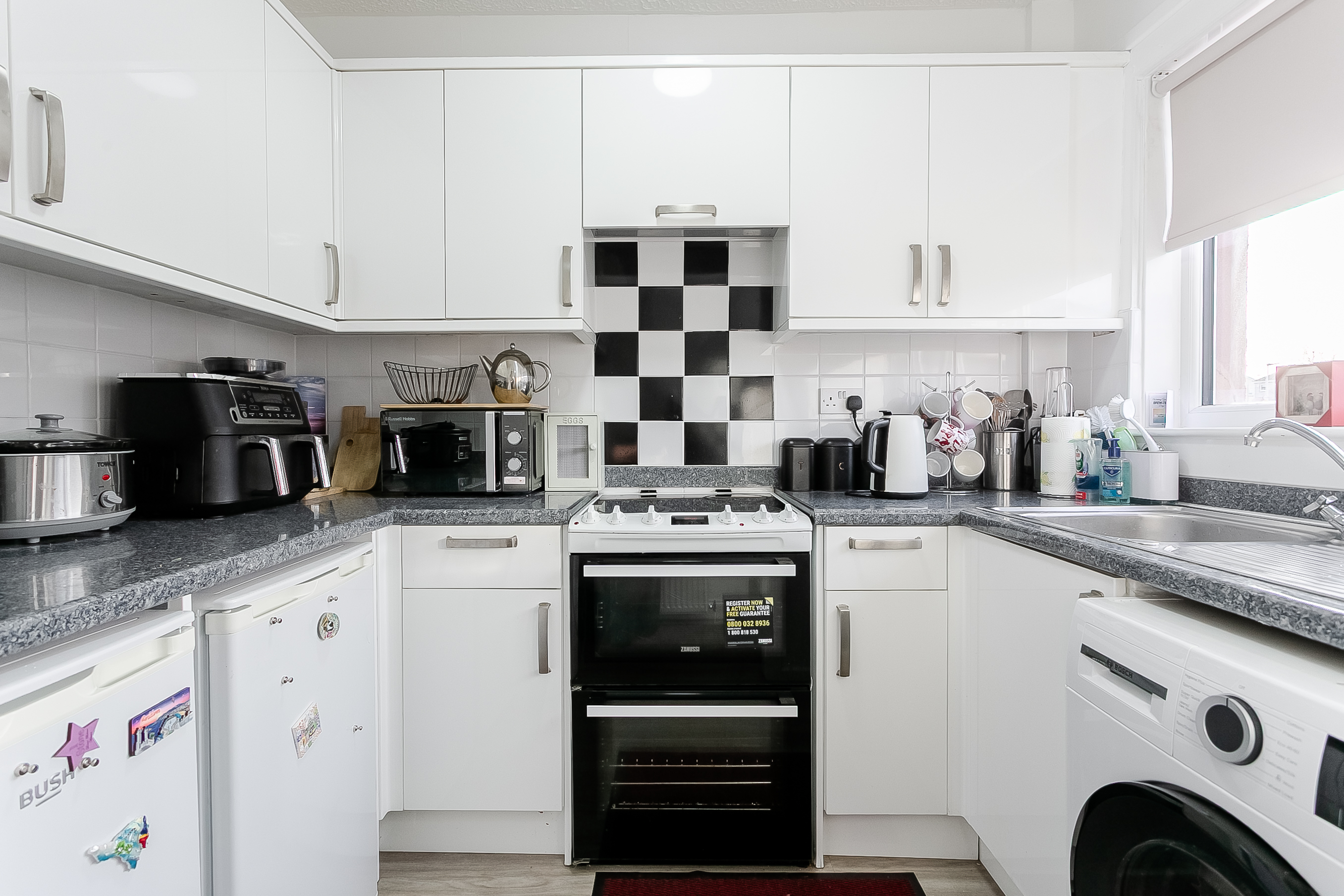Tastefully presented, two-bedroom, south-facing mid-terrace home, with generous gardens and an allocated parking space. Set ‘off-street’, in a popular and established residential area of Tranent, East Lothian.