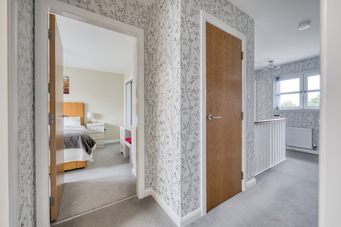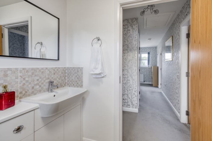 On the upper floor, the master bedroom is set to the front, tastefully finished, featuring carpeted flooring, a built-in wardrobe and a modern en-suite shower room. Three further well-proportioned bedrooms are set to each aspect, similarly finished with carpeted flooring, light decor and built-in wardrobes.