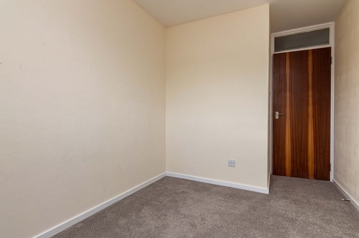 Appliances include an integrated ceramic hob, oven, extractor hood; and a freestanding washing machine, dishwasher and fridge/freezer. Bedroom one is set to the front, with carpeted flooring and pendant lighting; whilst bedrooms two and three are similarly sized and well finished with ample space for freestanding bedroom furniture; and set to the rear, a small carpeted storage room could be used flexibly as an office.