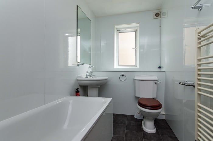 Completing the accommodation, the bathroom is fitted with a white three-piece suite with an electric shower over the bath, and modern panelled splashbacks.