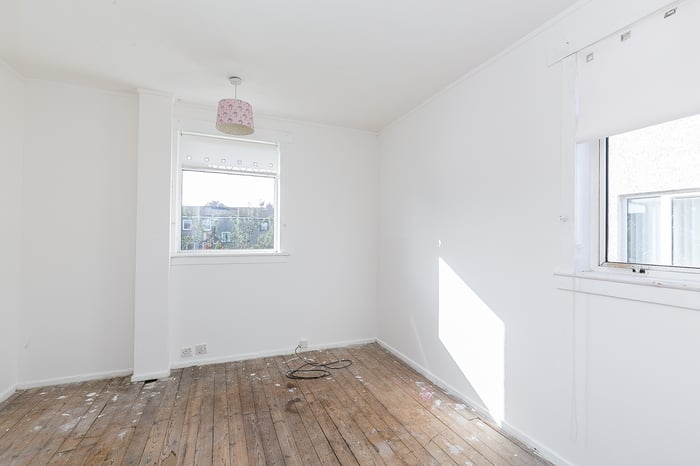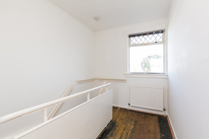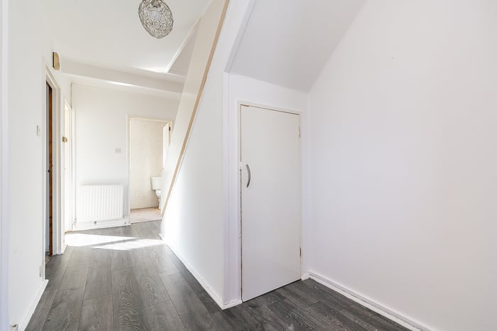 On the first floor, two well-proportioned double bedrooms are set to both aspects, with bedroom one featuring a built-in cupboard; whilst both bedrooms have the potential for built-in wardrobes. A third, dual-aspect bedroom has carpeted flooring and a central pendant light fitting.
