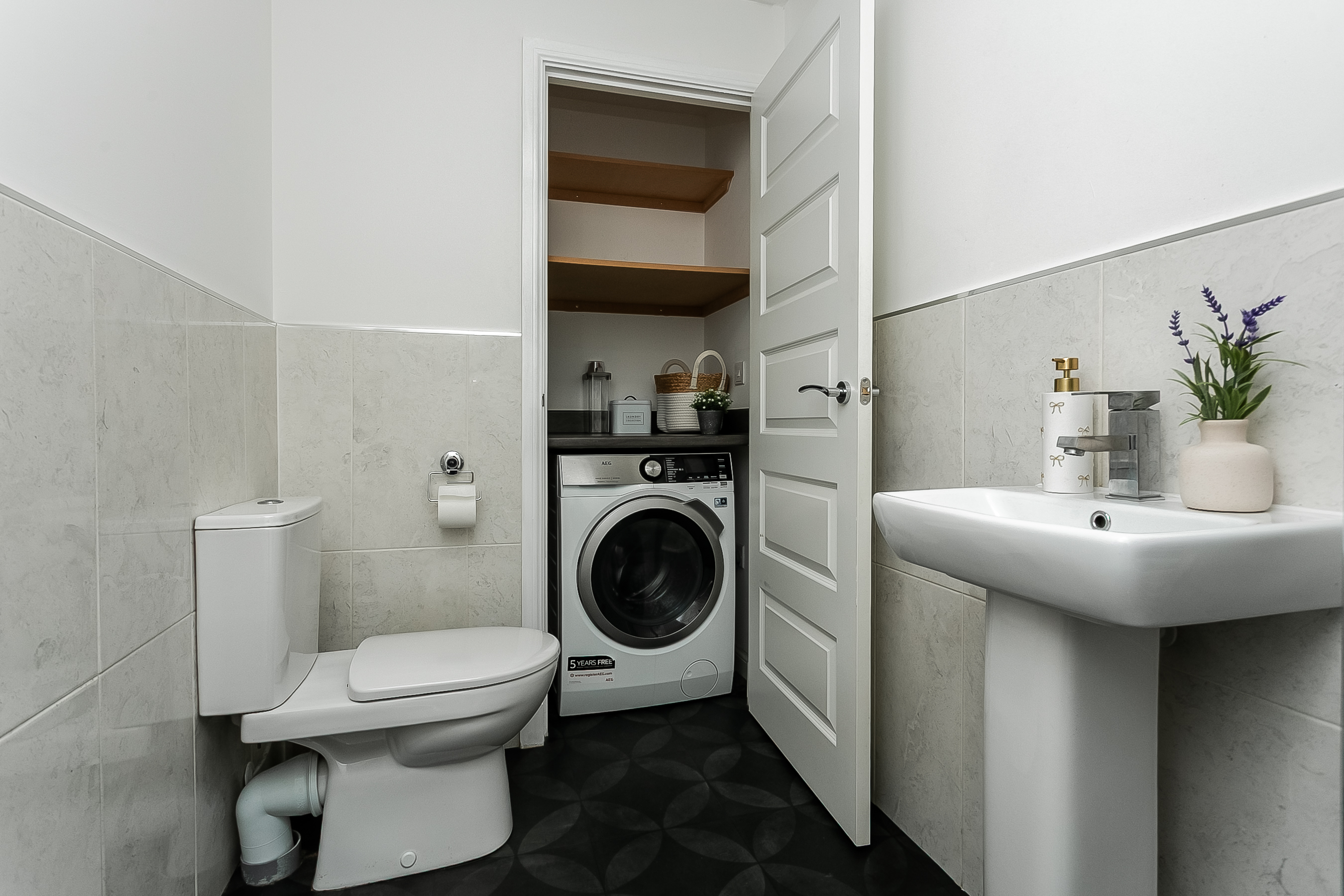 Light and beautifully presented, three-bedroom, mid-terrace home, with gardens and an allocated parking space. Located in a modern residential development in the desirable South Gyle area, west of Edinburgh city centre. A welcoming entrance leads into the property and through to the living room, with a convenient WC set off from the hallway, including a utility cupboard housing a washing machine.
