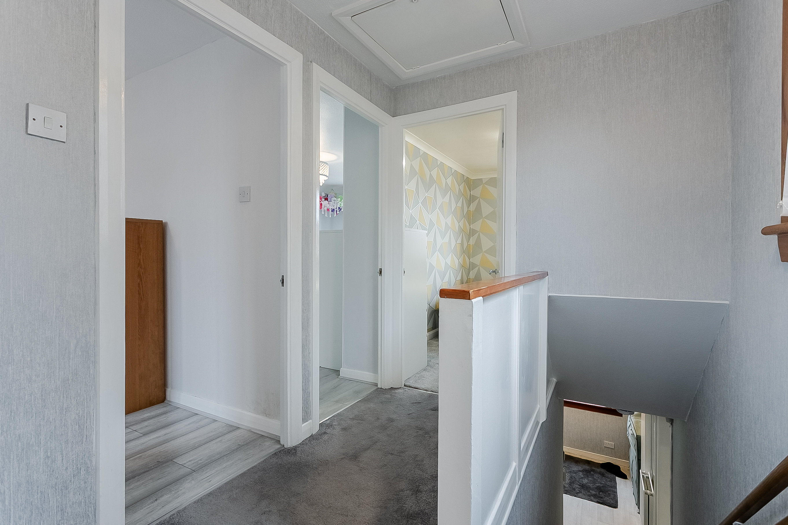 The third bedroom also offers integrated storage, while completing the accommodation, the family bathroom is fitted with a three-piece suite including a shower over the bath, tiled splash walls, and a ladder-style radiator.