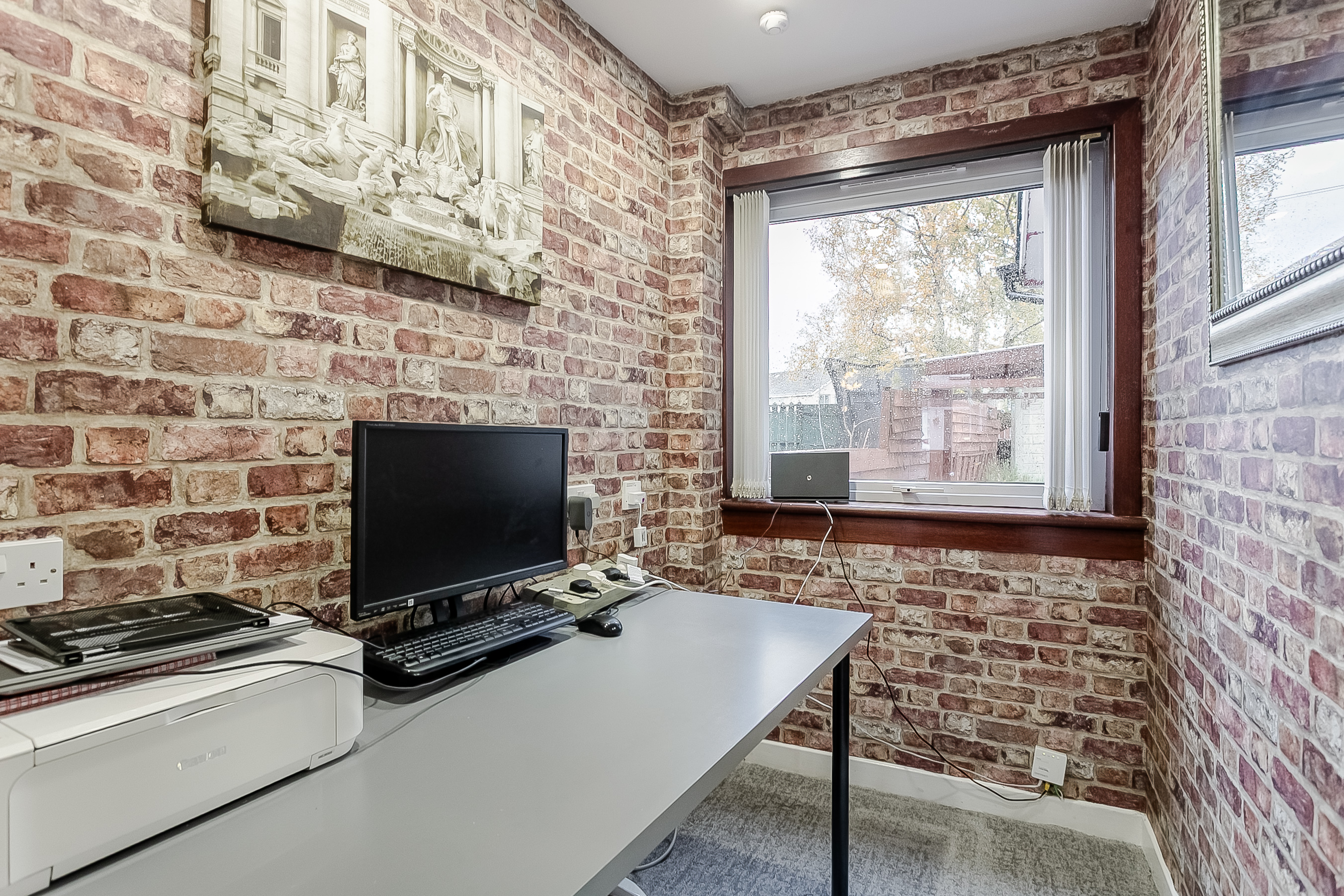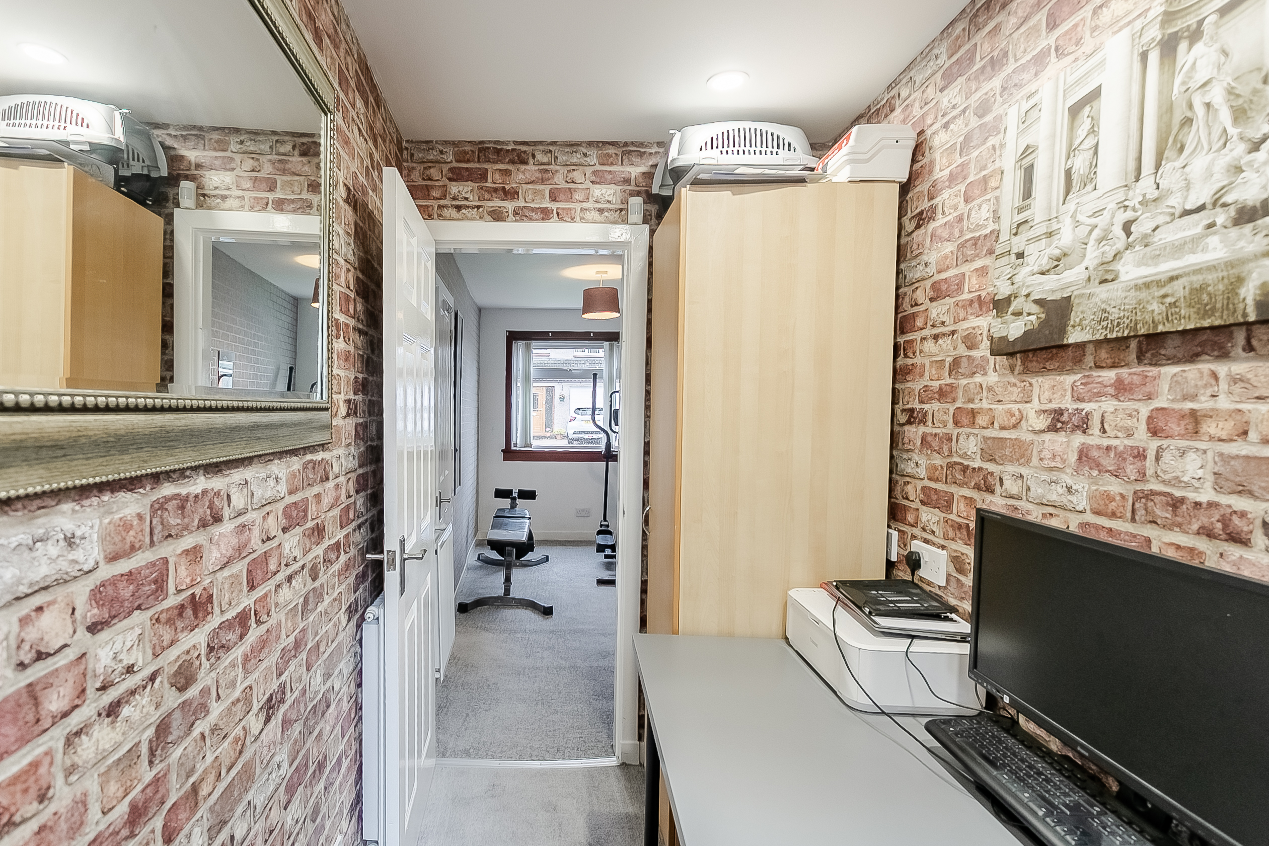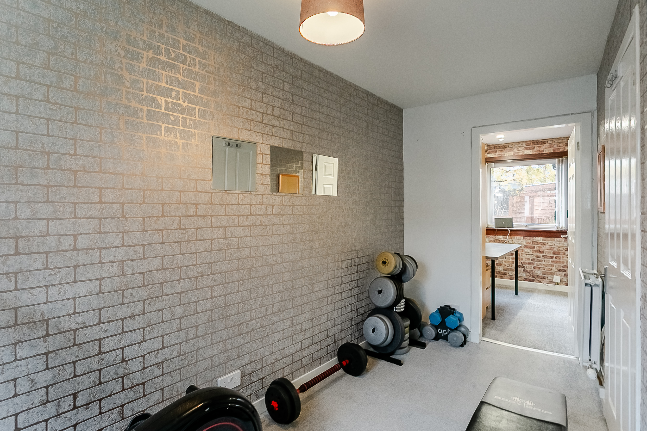 There is ample space for freestanding appliances, and a door conveniently opens out to the rear garden. Completing the ground floor is a versatile fourth bedroom with an adjoining study area – ideal for use as a home office, gym, or guest room.