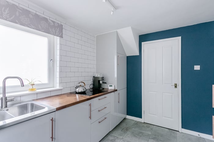 • Highlights include a quality fitted kitchen with integrated appliances and walnut wood veneer worktops, a stylish bathroom, and contemporary flooring.