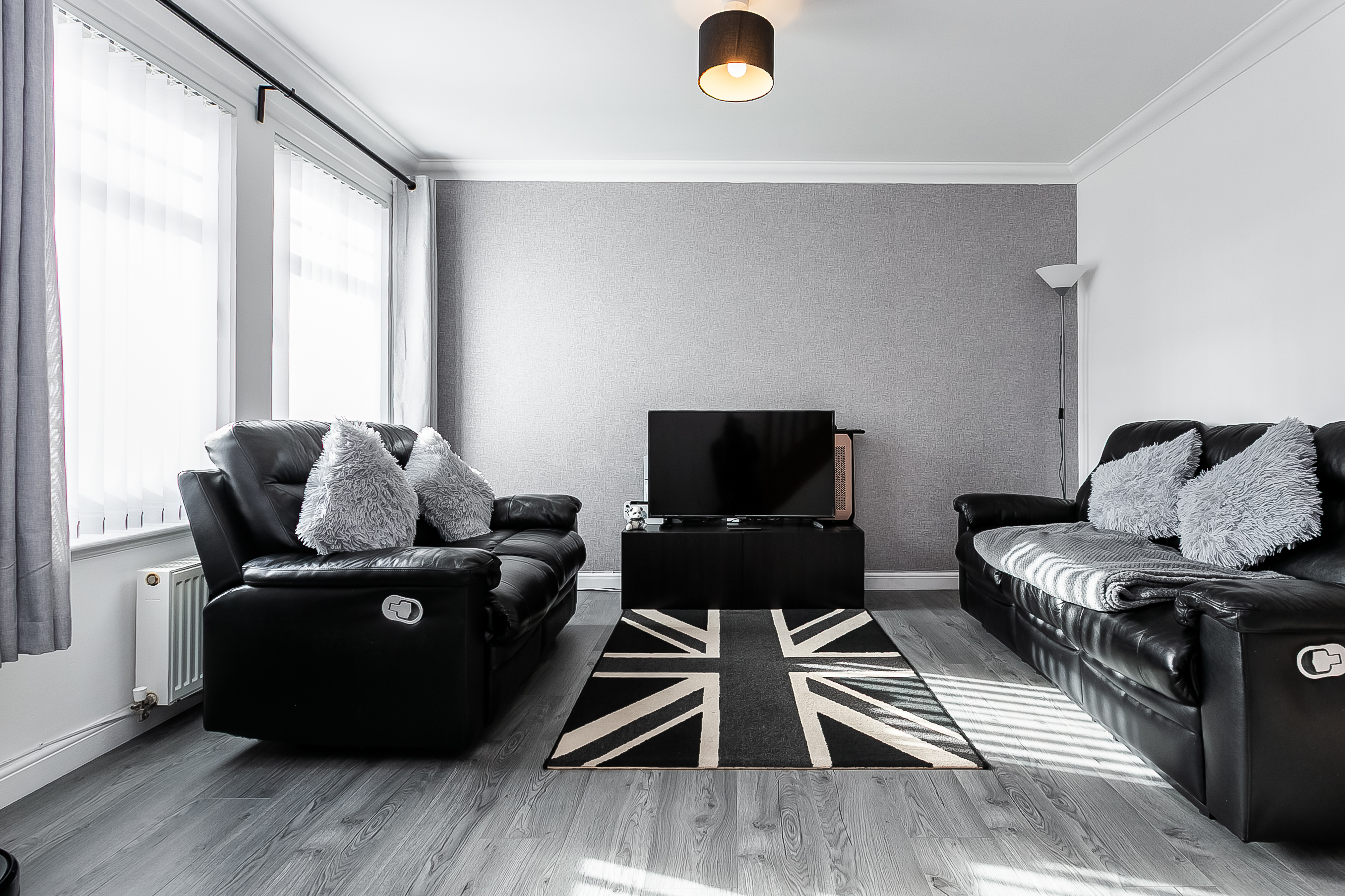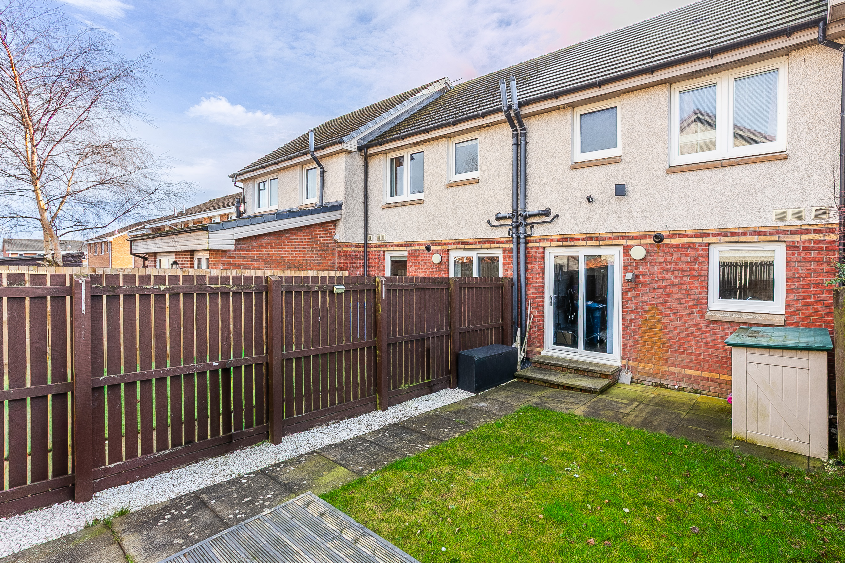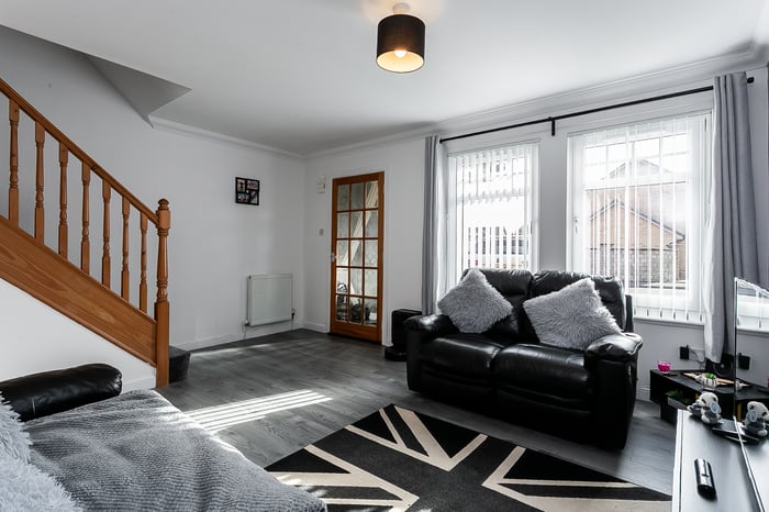 Beautifully presented and enjoying a sunny south-facing aspect, this two-bedroom mid-terrace home offers stylish, modern living, private gardens and a driveway. Located in a quiet and established residential area of Armadale, West Lothian. A welcoming entrance vestibule provides practical space for outerwear, flowing seamlessly into the bright front-facing living room. Finished in light, neutral decor and attractive wood-effect flooring that continues from the vestibule, the lounge benefits from excellent natural light thanks to its desirable south-facing position, creating a warm and inviting setting for everyday living.