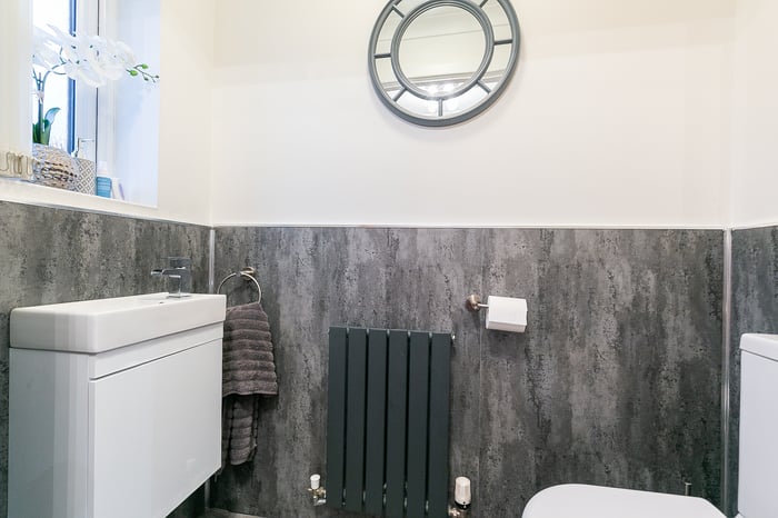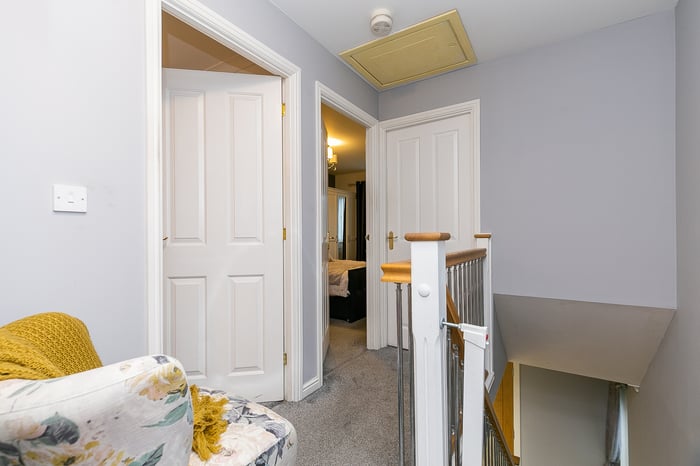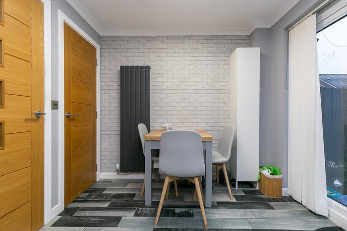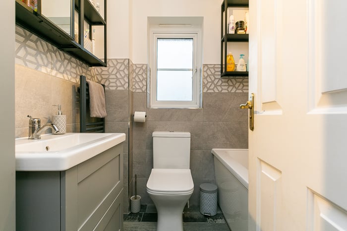 Completing the accommodation, the bathroom is fitted with a modern three-piece suite, a mains mixer shower over the bath and a ladder-style radiator.