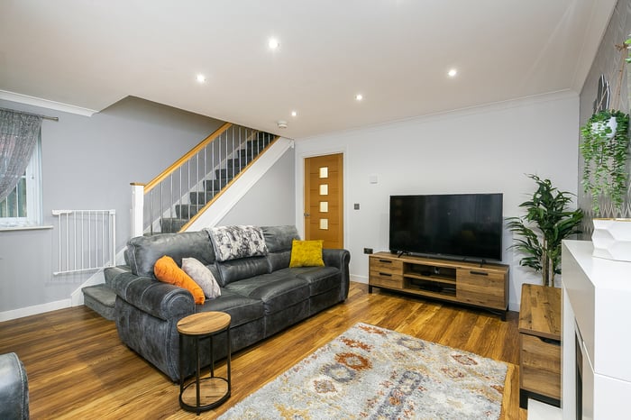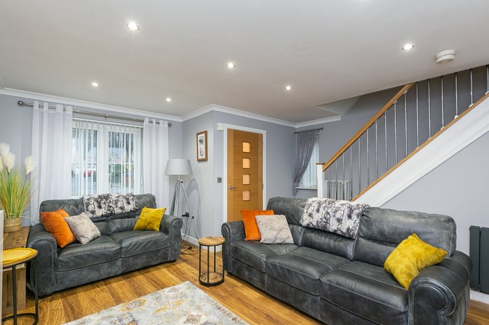 Beautifully presented, three-bedroom, modern end-terrace home with gardens and two allocated parking spaces. Located in an established residential development in Glenrothes, Fife.