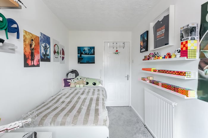 Each room is carpeted for warmth and comfort, with space for free-standing or built-in furniture. The principal bedroom offers plenty of room for a double bed and additional furnishings, while the remaining bedrooms can serve as children’s rooms, guest bedrooms, or even a dedicated home office, depending on your needs.