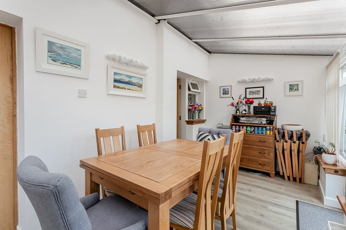 • Comprises a vestibule, hall, living/dining room, kitchen, conservatory, three flexible bedrooms, and a family bathroom.