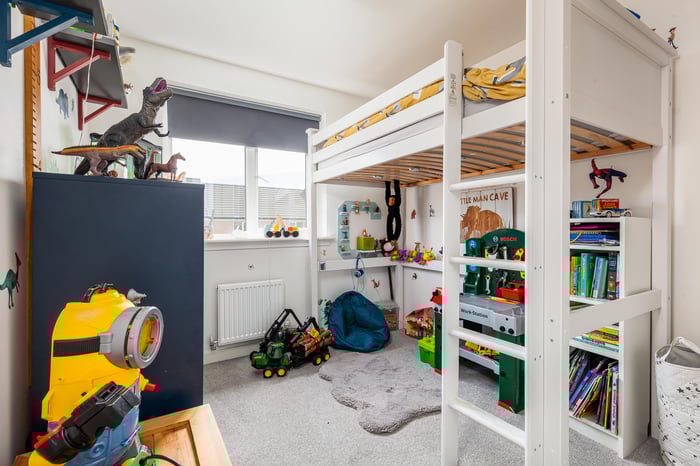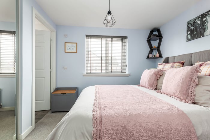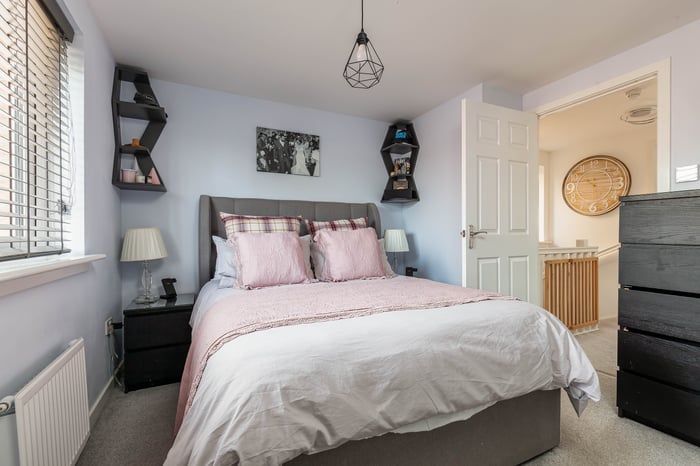 On the upper floor, the tastefully finished master bedroom is set to the front, with carpeted flooring, a built-in wardrobe with mirror sliding doors, a central light fitting and a modern en-suite shower room. Whilst two further carpeted bedrooms are similarly well-finished, set to the rear, overlooking the garden.