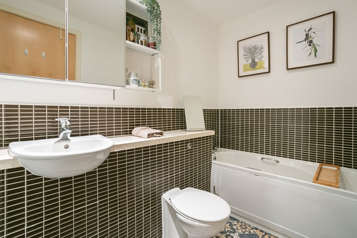 Completing the accommodation, the family bathroom is set internally and is fitted with a modern three-piece suite, a shaver point, tiled splash walls and recessed spotlighting.