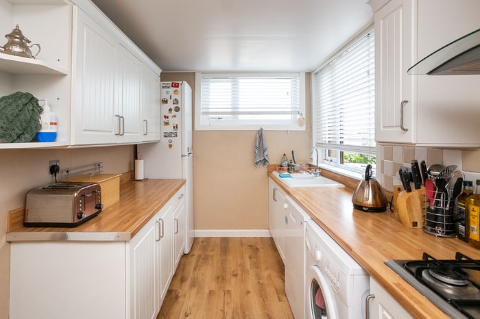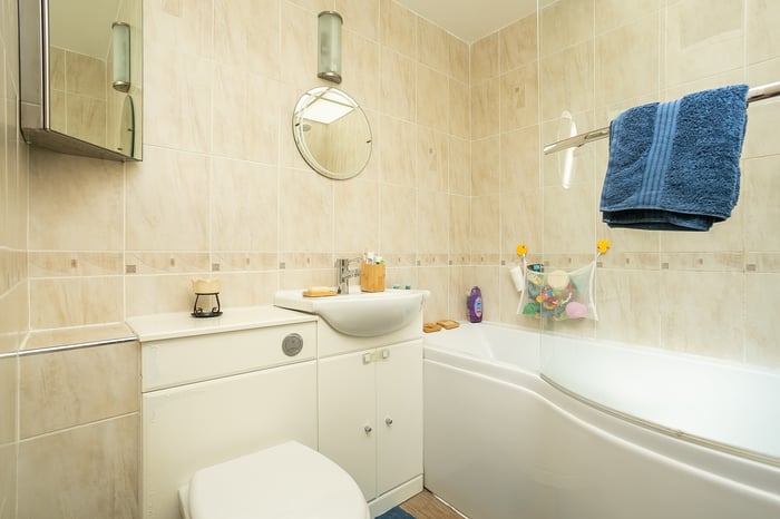 Completing the accommodation, the bathroom is fitted with a modern three-piece suite including an electric shower over the bath, tiled splash walls and a ladder-style radiator.