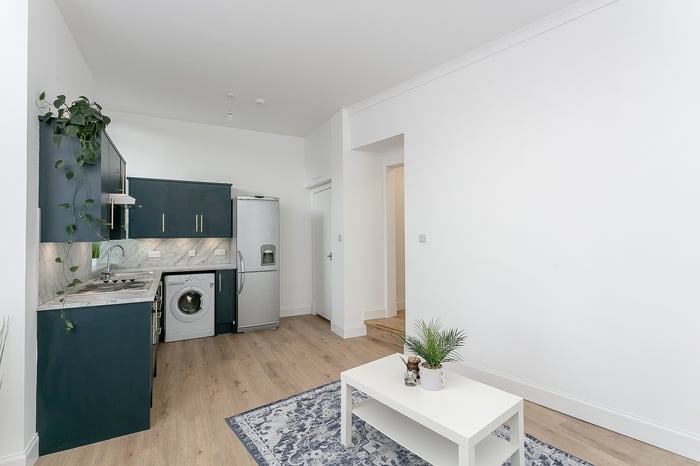 Located on a quiet side street in the sought-after Polwarth area, just west of Edinburgh city centre, this light-filled and stylish ground-floor flat occupies a desirable corner position within a traditional stone-built tenement. The property benefits from its own main door entrance, leading into a welcoming vestibule and a bright, open-plan living space.
