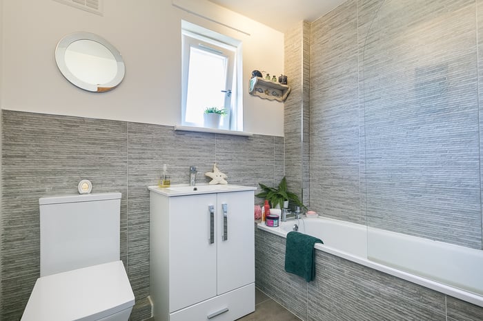 Completing the accommodation, the family size bathroom is fitted with a stylish suite, including a shower over the bath and tiled splash walls.