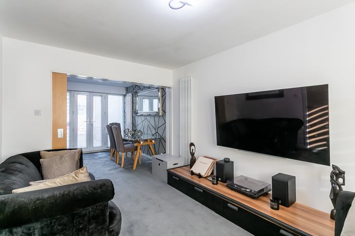 • Beautifully presented and spacious, three-bedroom, modern mid-terrace townhouse, with patio garden, roof terrace, balcony and an integrated garage.