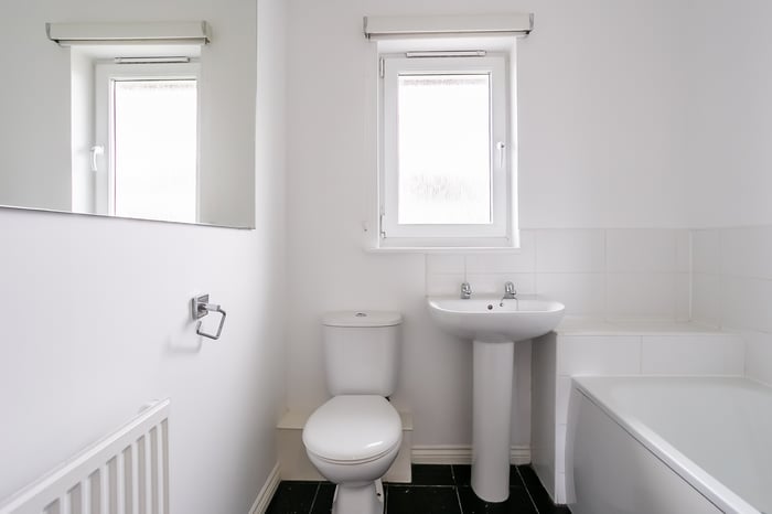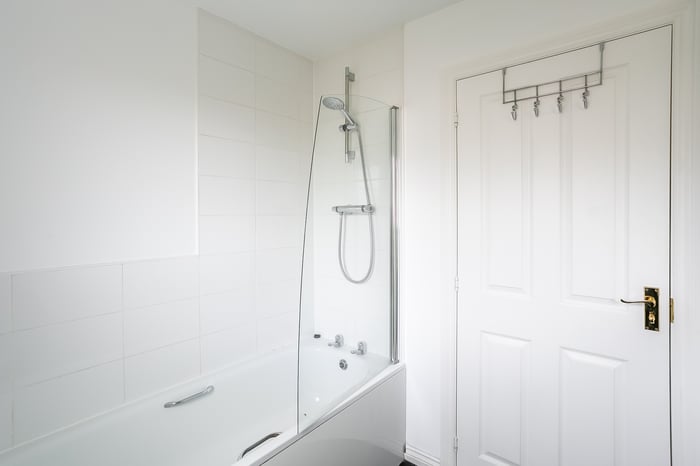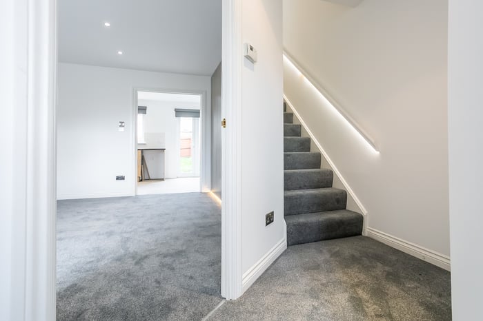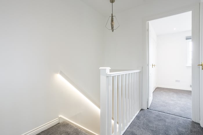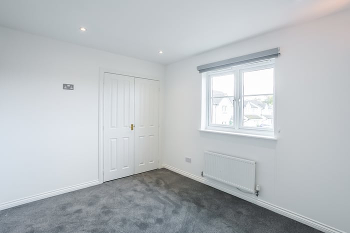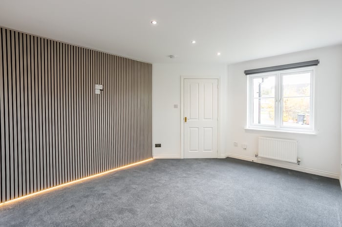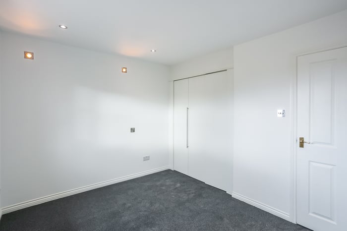 Bedroom two overlooks the rear garden and also includes carpeted flooring and recessed spotlighting. Completing the accommodation, a bright family bathroom is fitted with a three-piece suite, including a shower over the bath, and tiled flooring and splash walls.
