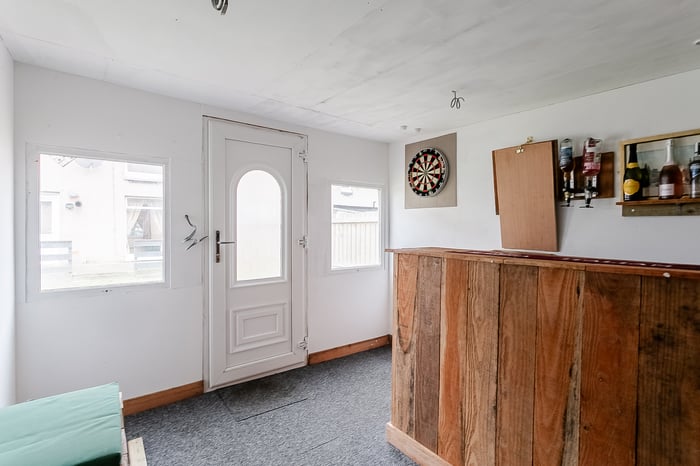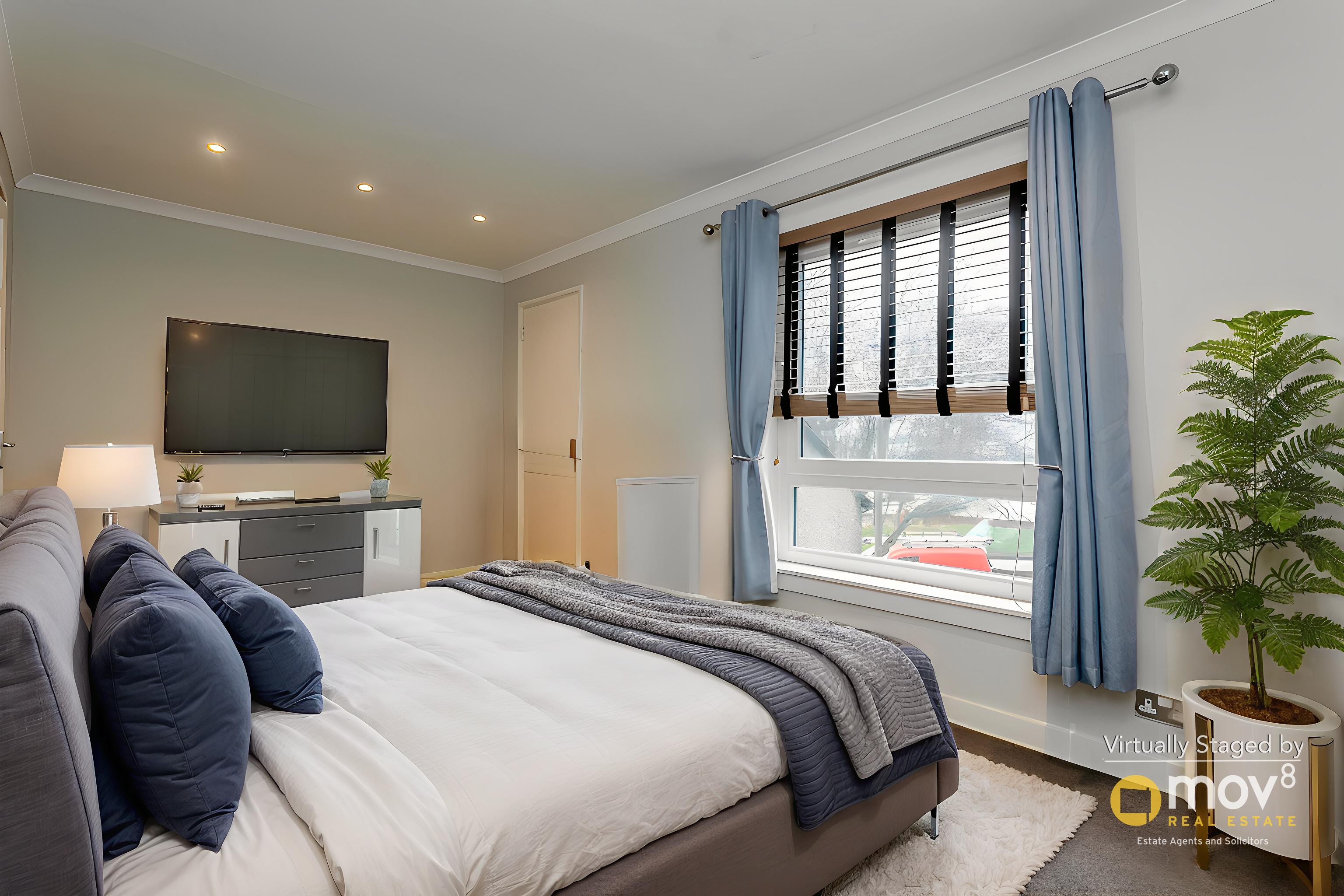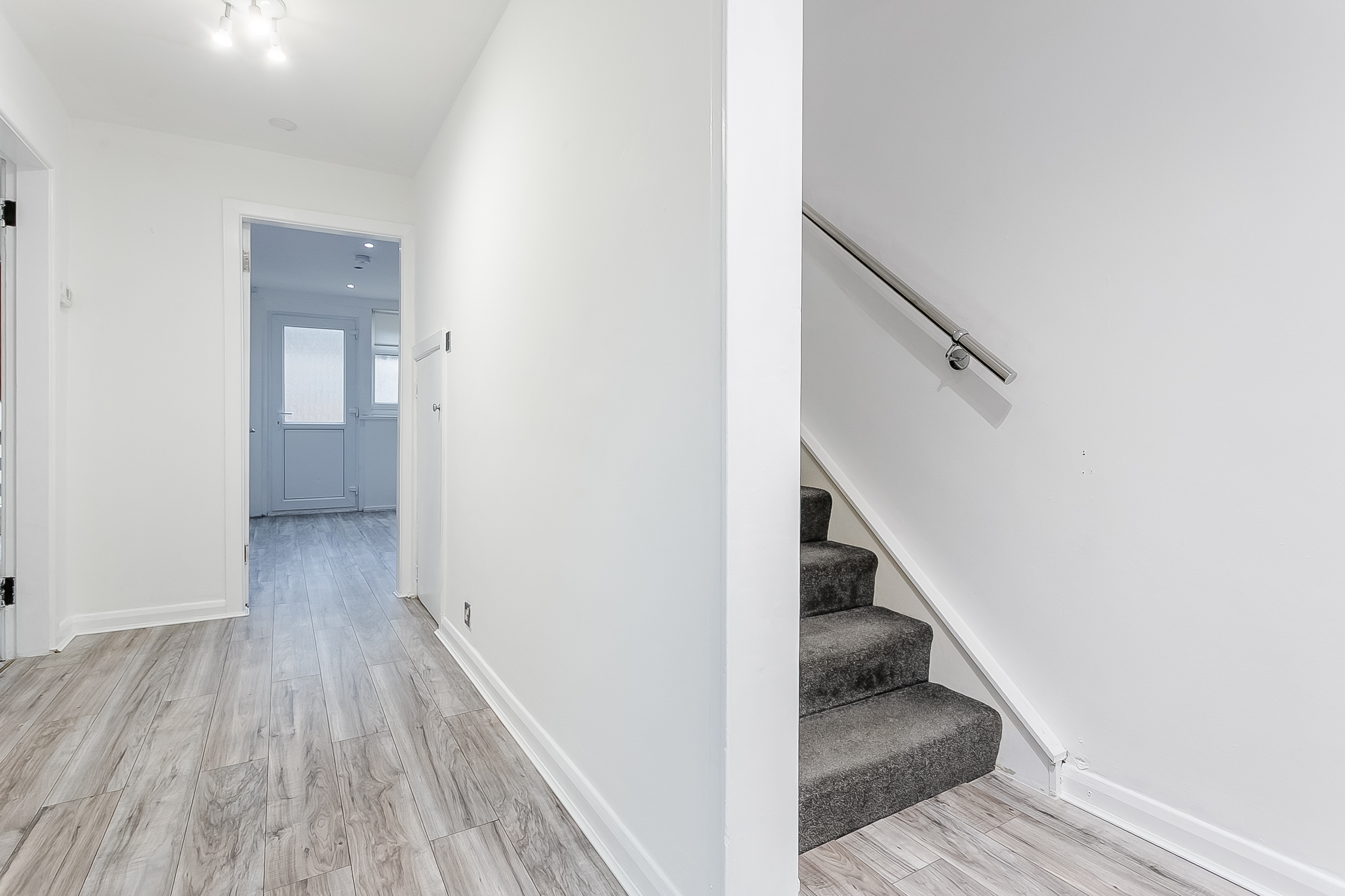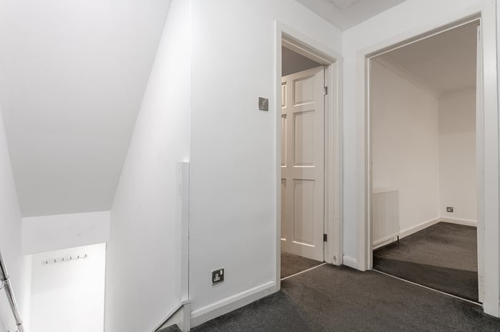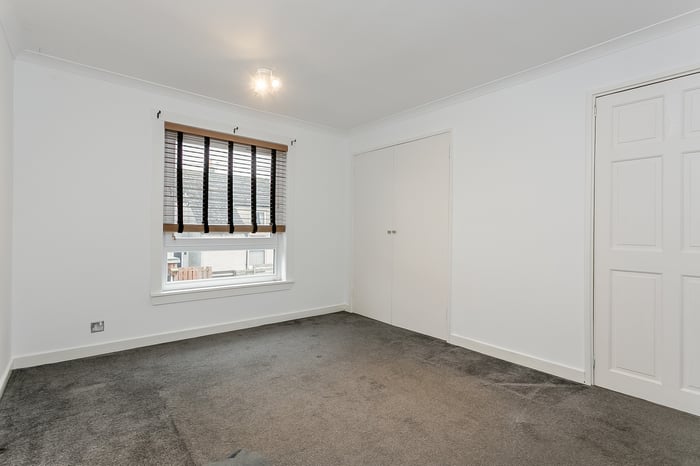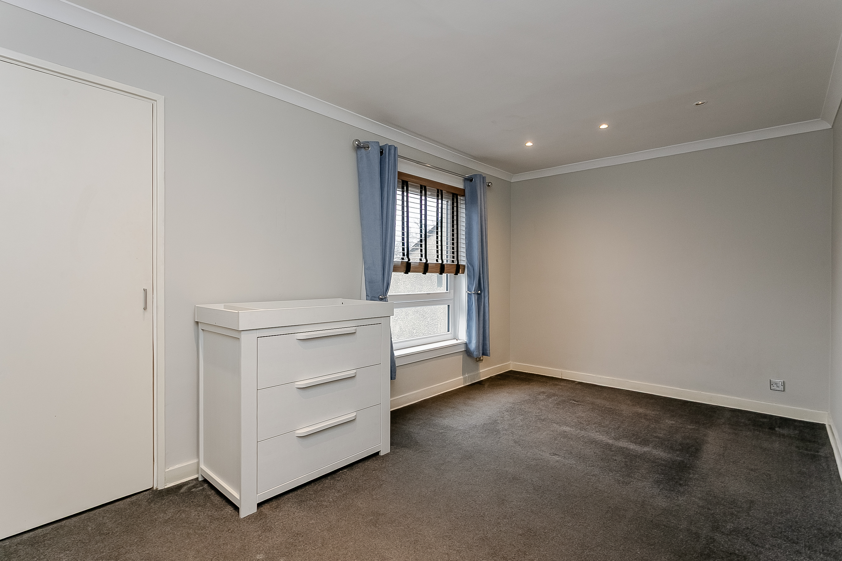 A rear door provides direct access to the garden, adding to the practicality of the space. On the first floor, the principal bedroom is a well-proportioned double room featuring carpeted flooring, spotlighting and a built-in storage cupboard, offering a calm and comfortable retreat.