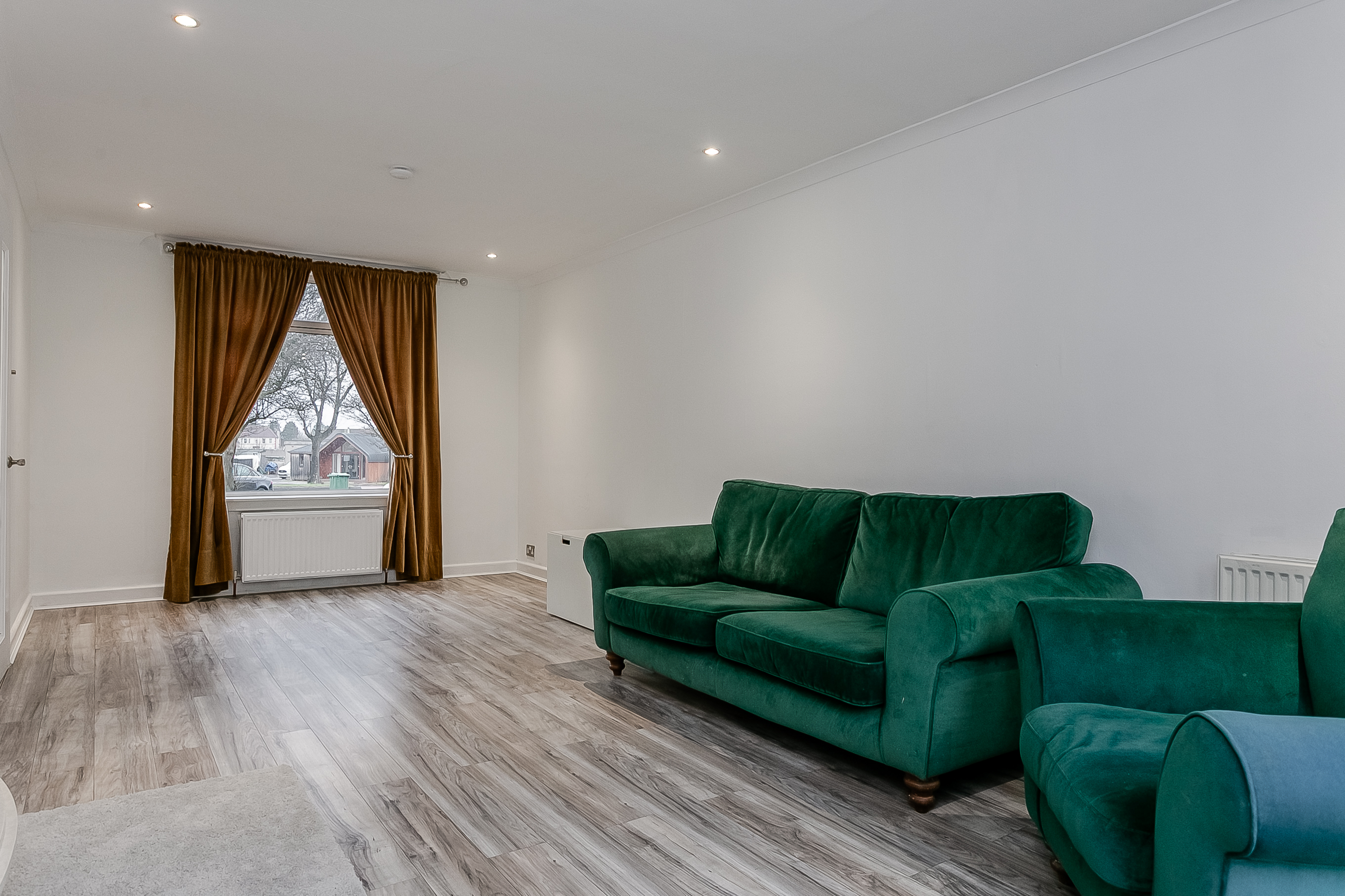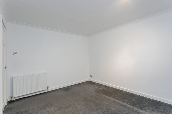 Bedroom two is also generously sized, with carpeted flooring, a built-in wardrobe and a central light fitting, making it ideal as a second bedroom, guest room or home office. Completing the property is the fitted three-piece bathroom, finished with tiled-effect flooring, spotlighting and a tiled splashback surround, providing a clean and contemporary feel.