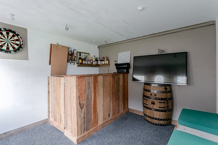 • There is a paved patio to the front and an external store, whilst the south-facing rear garden has a wood-decked patio, lawn, and a semi-converted summer house.
