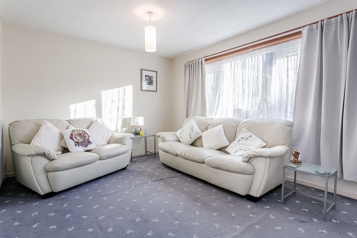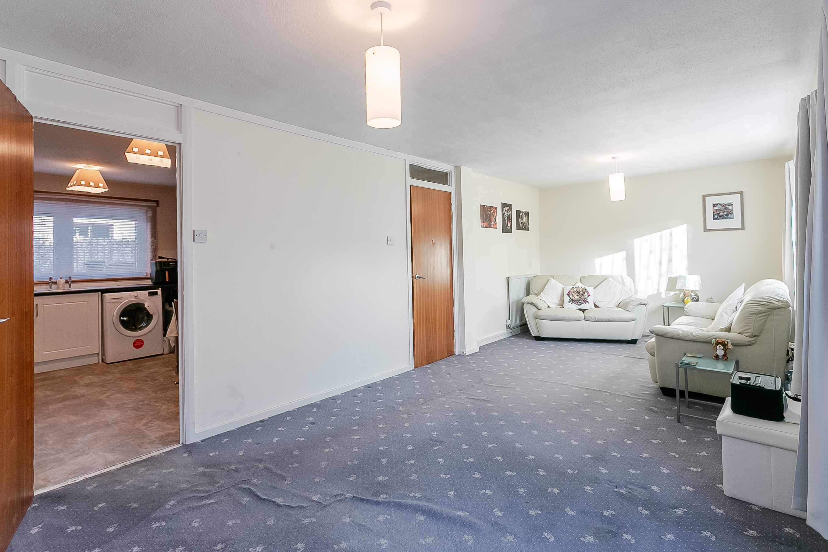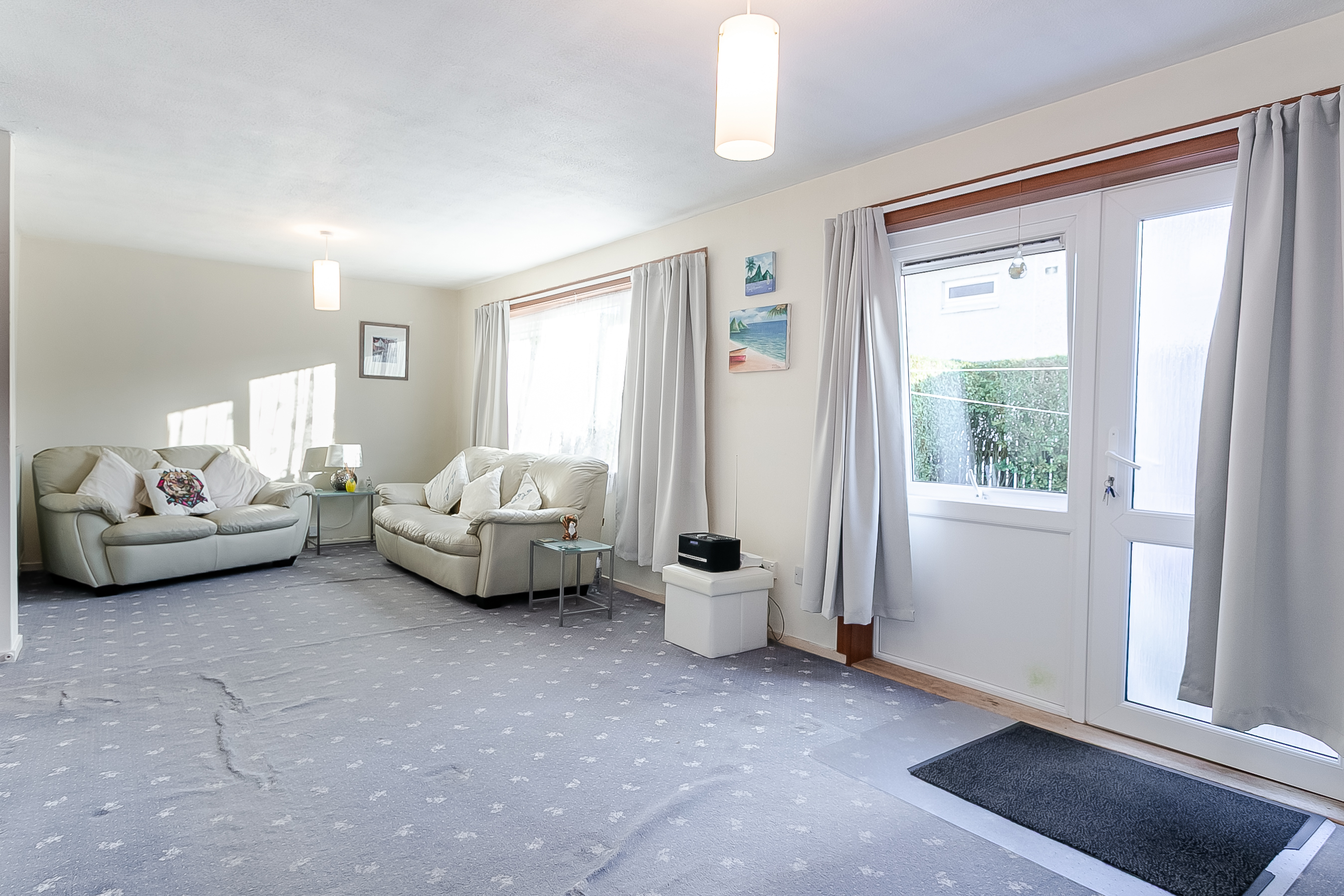 To the rear of the property, the bright and spacious living room spans the full width of the home and benefits from a desirable south-facing aspect, allowing an abundance of natural light. Patio doors lead directly to the garden, while the layout easily accommodates both lounge and dining furniture, making it an ideal space for everyday living and entertaining.