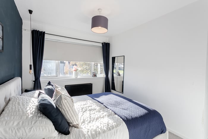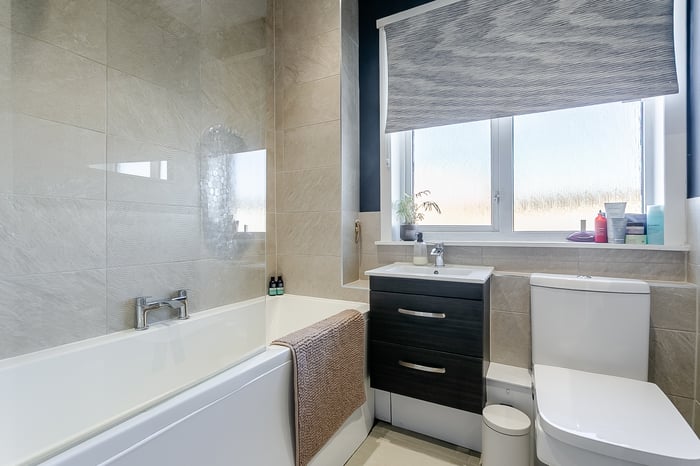 Two further well-presented bedrooms are set to opposite aspects, with bedroom two including two built-in wardrobes and bedroom three, a built-in storage cupboard and a freestanding wardrobe included in the sale. Completing the accommodation, a stylish family-sized bathroom is fitted with a modern three-piece suite including a rainfall shower and tiled splash walls.